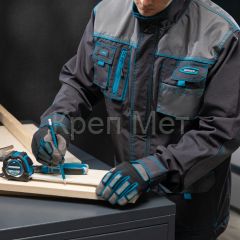 Профессиональная рабочая куртка Gross 90345 размера XXL защищает мастера от общих производственных загрязнений и механических повреждений (истираний). Рассчитана на рост 188-191 см и предназначена для использования в теплое время года или в отапливаемом помещении. Куртка изготовлена из смесовой ткани, содержащей 35% хлопка, что обеспечивает ей дышащие свойства. Полиэстер в составе материала повышает износостойкость спецодежды. Куртка будет полезна в промышленной, строительной сфере, во время обслуживания автомобилей и выполнения других работ.