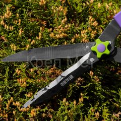 - Защита от разрушения — тефлоновое покрытие предотвращает образование коррозии на основном лезвии, а порошковое покрытие — на рукоятках.