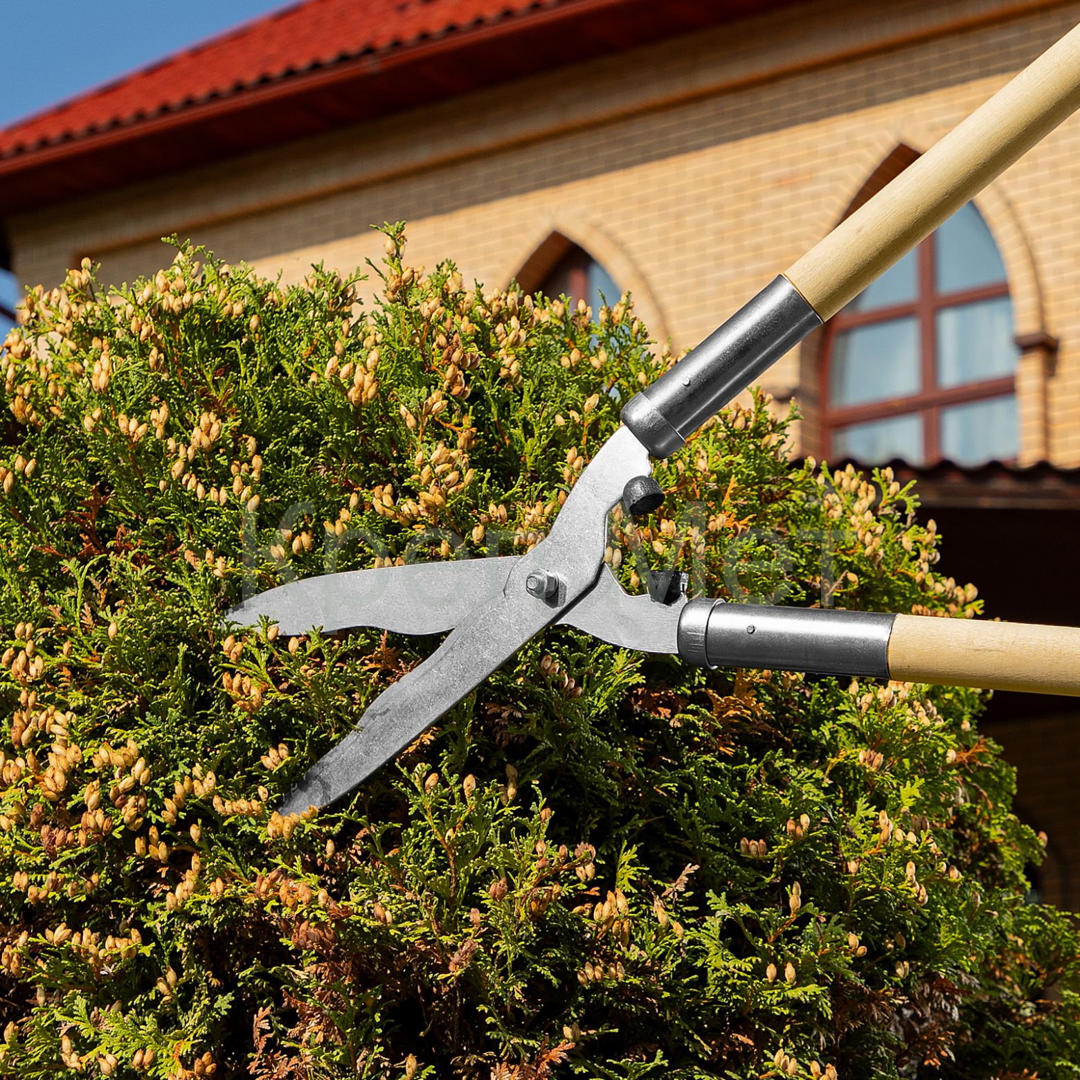 - Кусторез, 650 мм, волнистые лезвия, деревянные рукоятки, Горизонт,