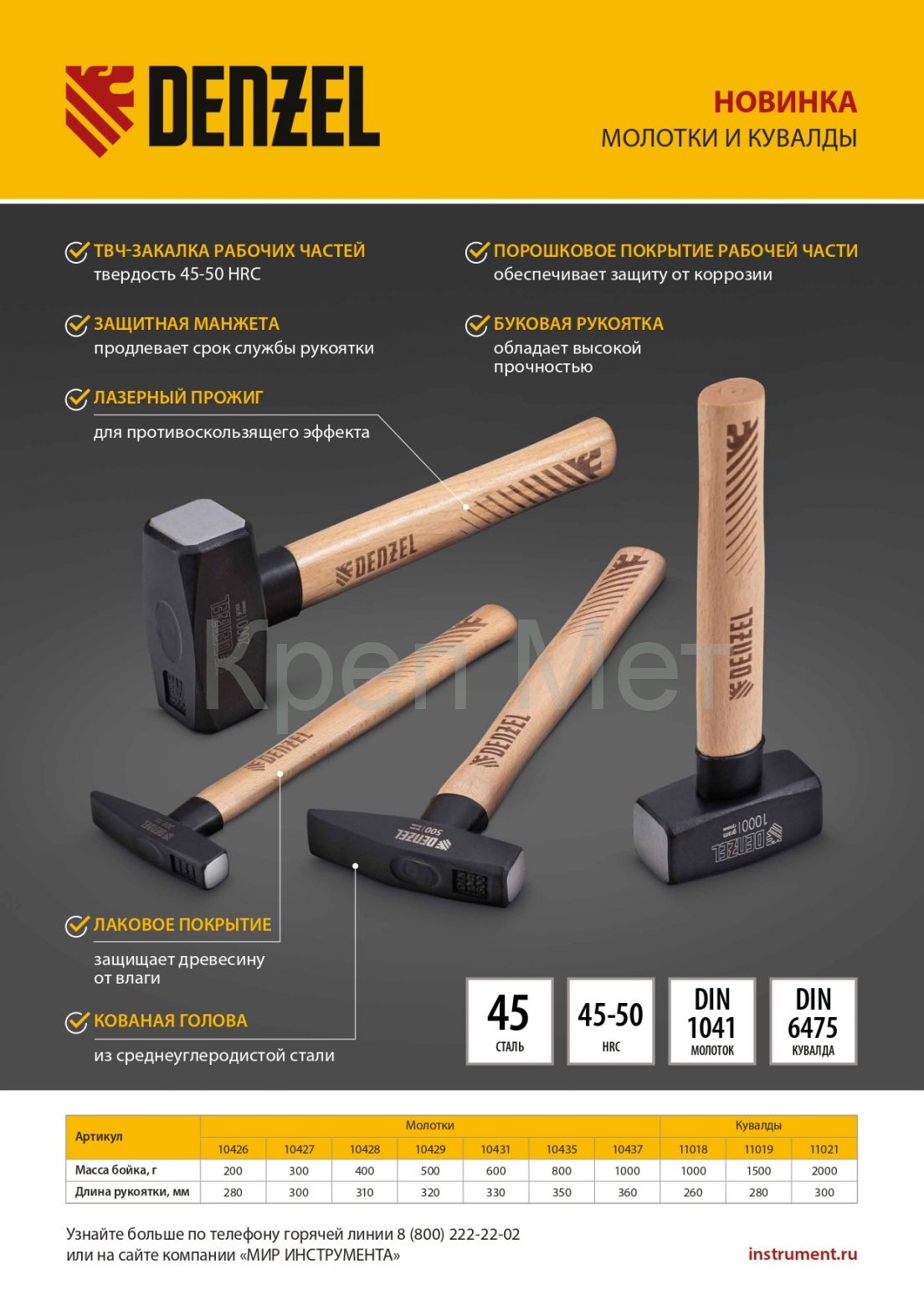 - Кувалда, 2000 г, кованая головка, буковая рукоятка Denzel