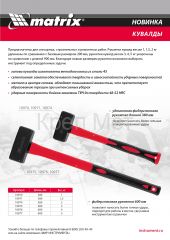 - Кувалда 3 кг, фибергласовая обрезиненная рукоятка 600 мм Matrix