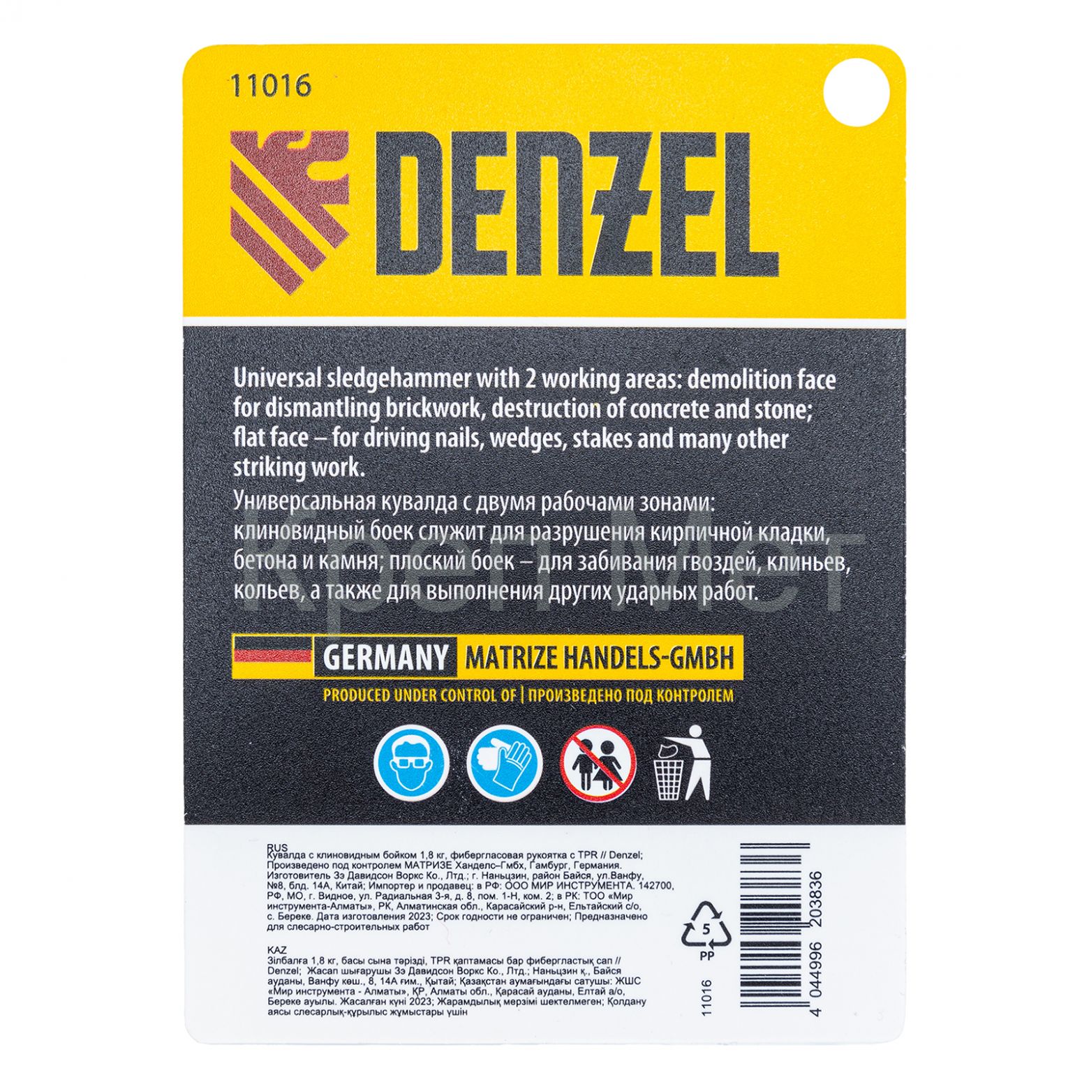 - Кувалда с клиновидным бойком 1,8 кг, фибергласовая рукоятка c TPR Denzel