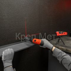 Лазерный уровень Matrix 35022 длиной 180 мм, с 4 глазками и штативом 220 мм, используется для построения разметки во время ремонта и строительства. Позволяет с высокой точностью выполнить установку подвесной мебели, монтаж розеток, выключателей и электроприборов, укладку облицовочной плитки на пол и стены. Дальность проецирования составляет 10 м. Красный цвет луча виден при любом освещении, поэтому уровень подходит для использования как в помещениях, так и на открытом воздухе.