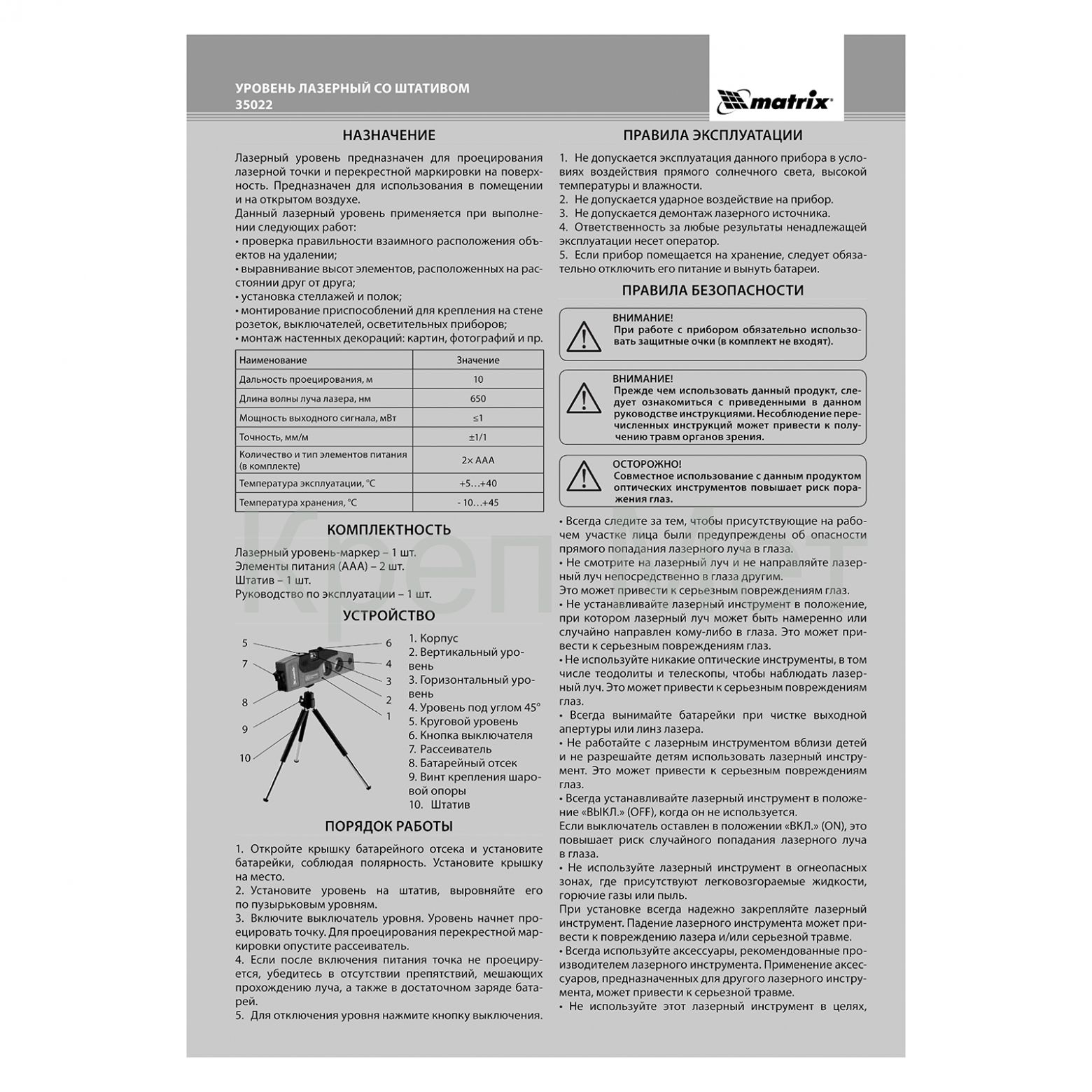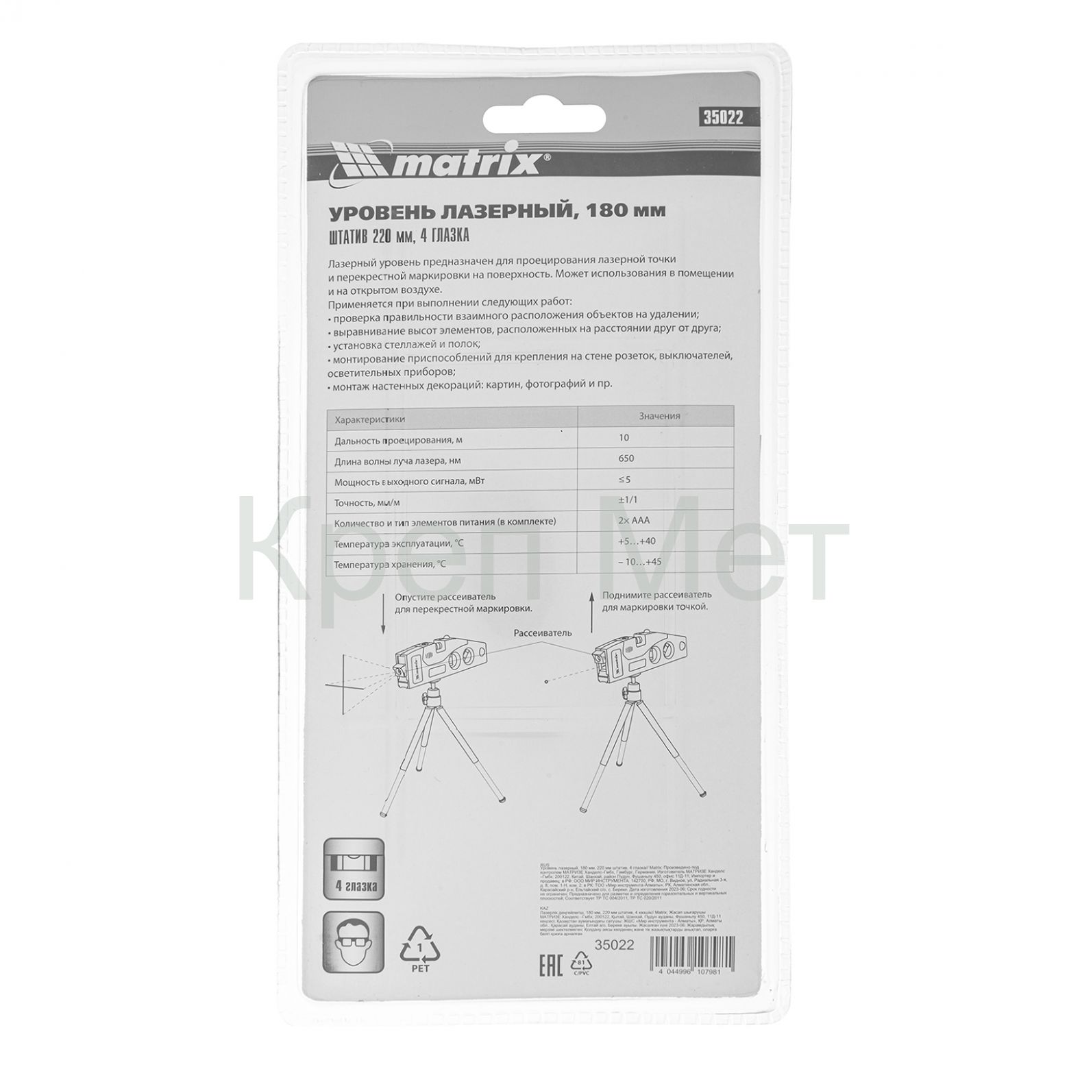 - Лазерный уровень, 180 мм, 220 мм штатив, 4 глазка Matrix