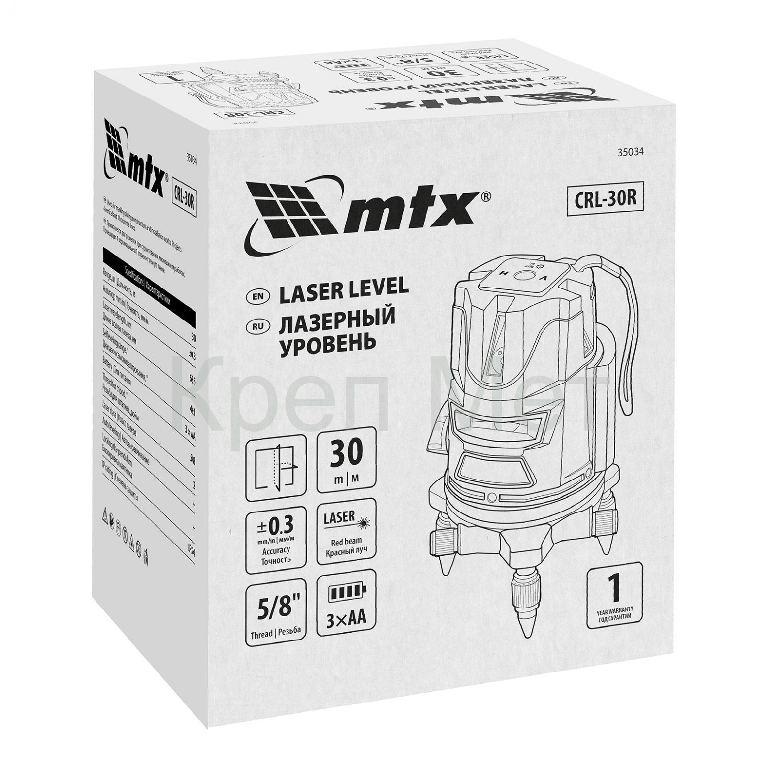 Лазерный уровень CRL-30R, 30 м, красный луч, батарейки, резьба 5/8" MTX