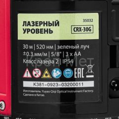 - Лазерный уровень CRX-30G, 30 м, зеленый луч, батарейки, резьба 5/8" MTX