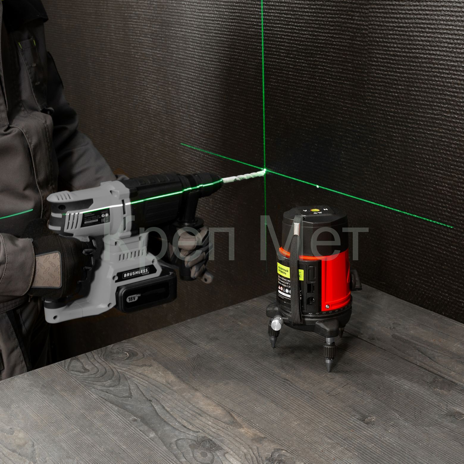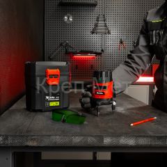 - Широкая комплектация — инструмент поставляется в удобном кейсе, с очками для распознавания лучей на большом расстоянии и при ярком освещении.