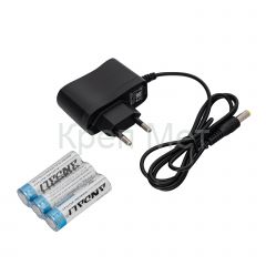- Работа в любых условиях — лазер комплектуется 3 батарейками типа АА, также возможна работа от сети (адаптер прилагается).