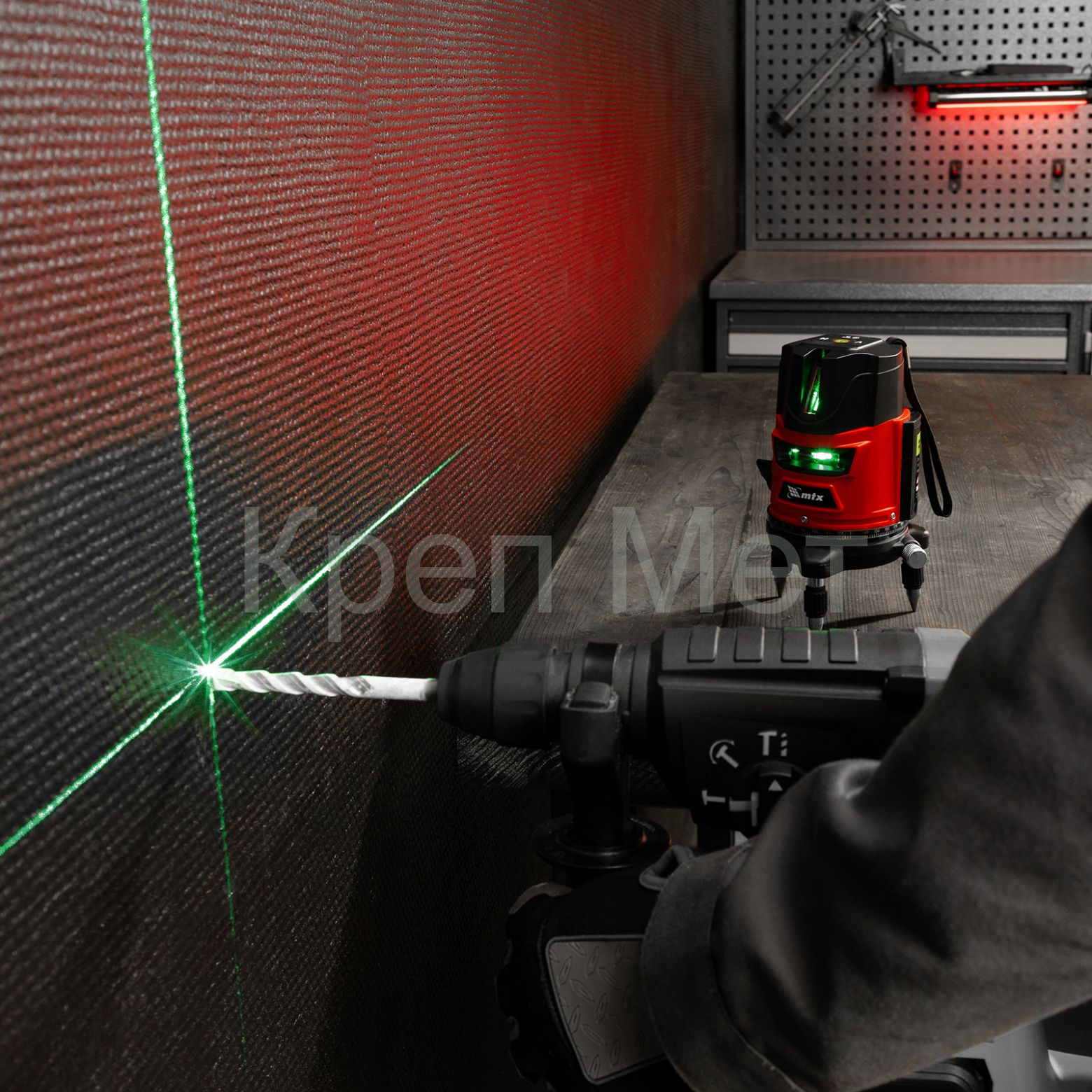 Лазерный уровень MTX CRX-30G 35032 с зеленым лучом, резьбой под штатив 5/8″, в комплекте с батарейками, проецирует на поверхность горизонтальную, вертикальную линии или крест дальностью до 30 м. Используется при проведении бытовых ремонтно-строительных работ в помещениях. Погрешность измерений составляет всего лишь ±1,5 мм 5 м.