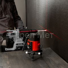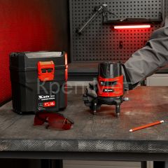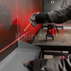 - Широкая комплектация — инструмент поставляется в удобном кейсе, с очками для распознавания лучей на большом расстоянии и при ярком освещении.