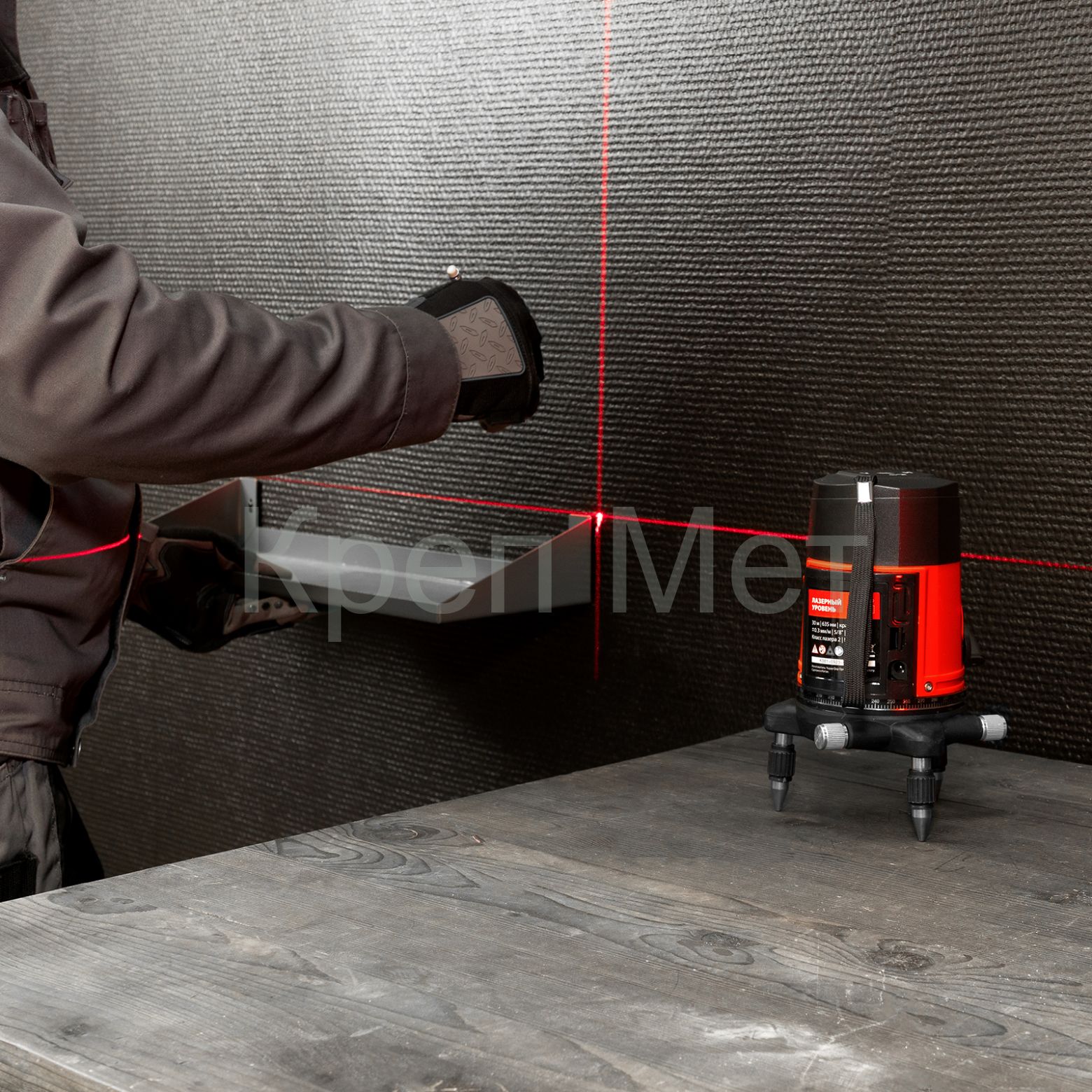 - Поворотное основание — можно плавно и точно наводить вертикальные лучи на нужный участок поверхности.
