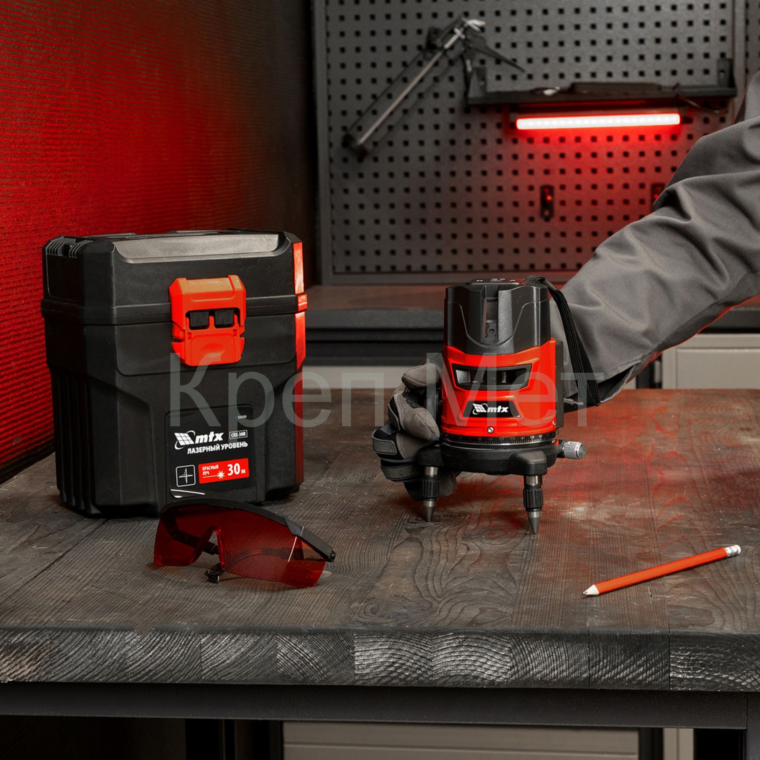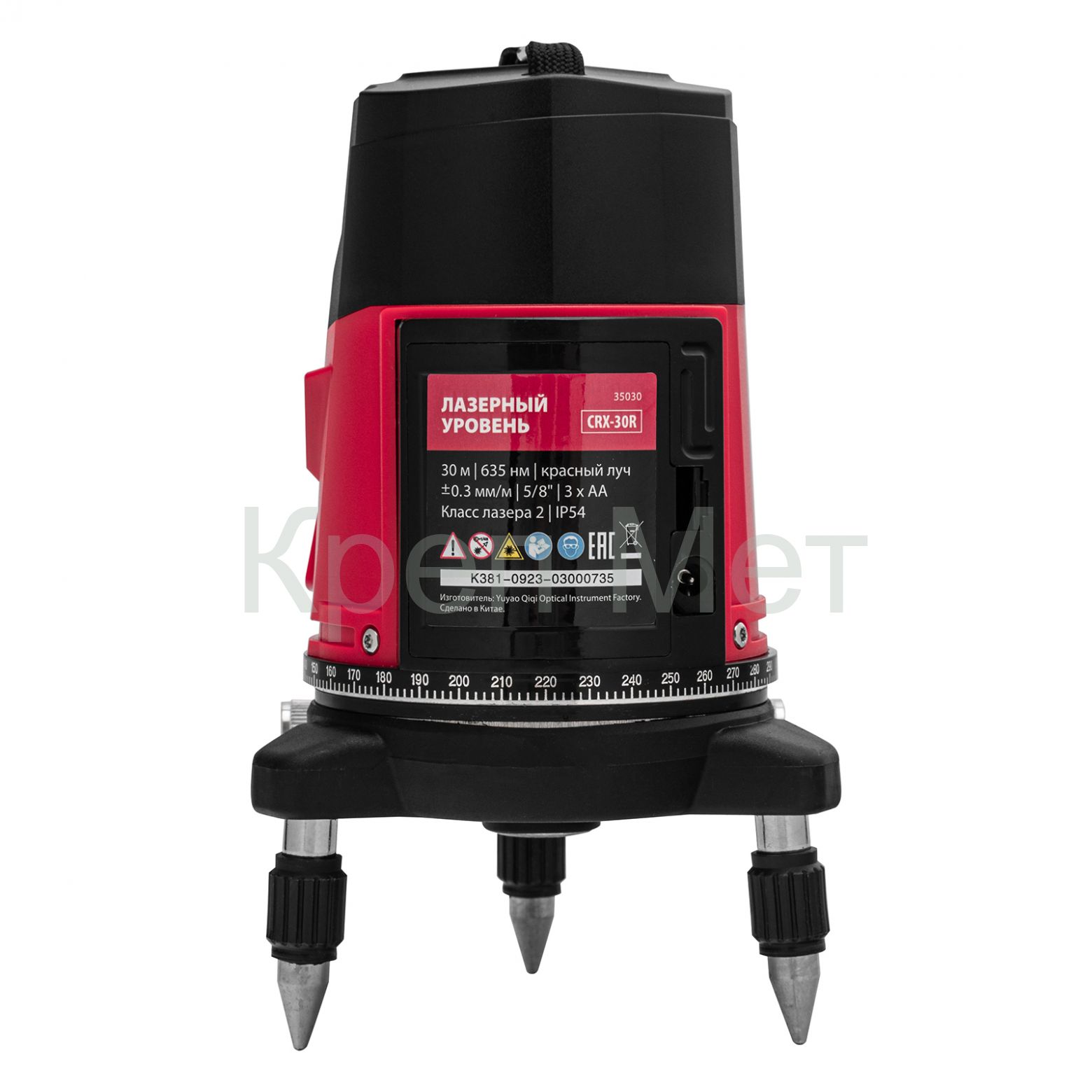 - Лазерный уровень CRX-30R, 30 м, красный луч, батарейки, резьба 5/8" MTX