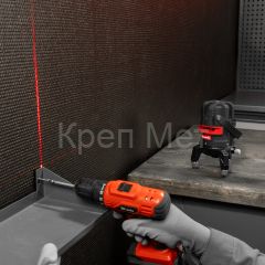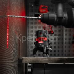 - Точная разметка — устройство работает в режиме автоматического выравнивания лучей (точность ±3 мм/м), а также имеет функцию ручной регулировки при помощи пузырькового уровня, винта точной настройки и регулируемых ножек.