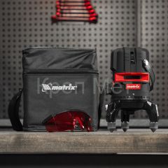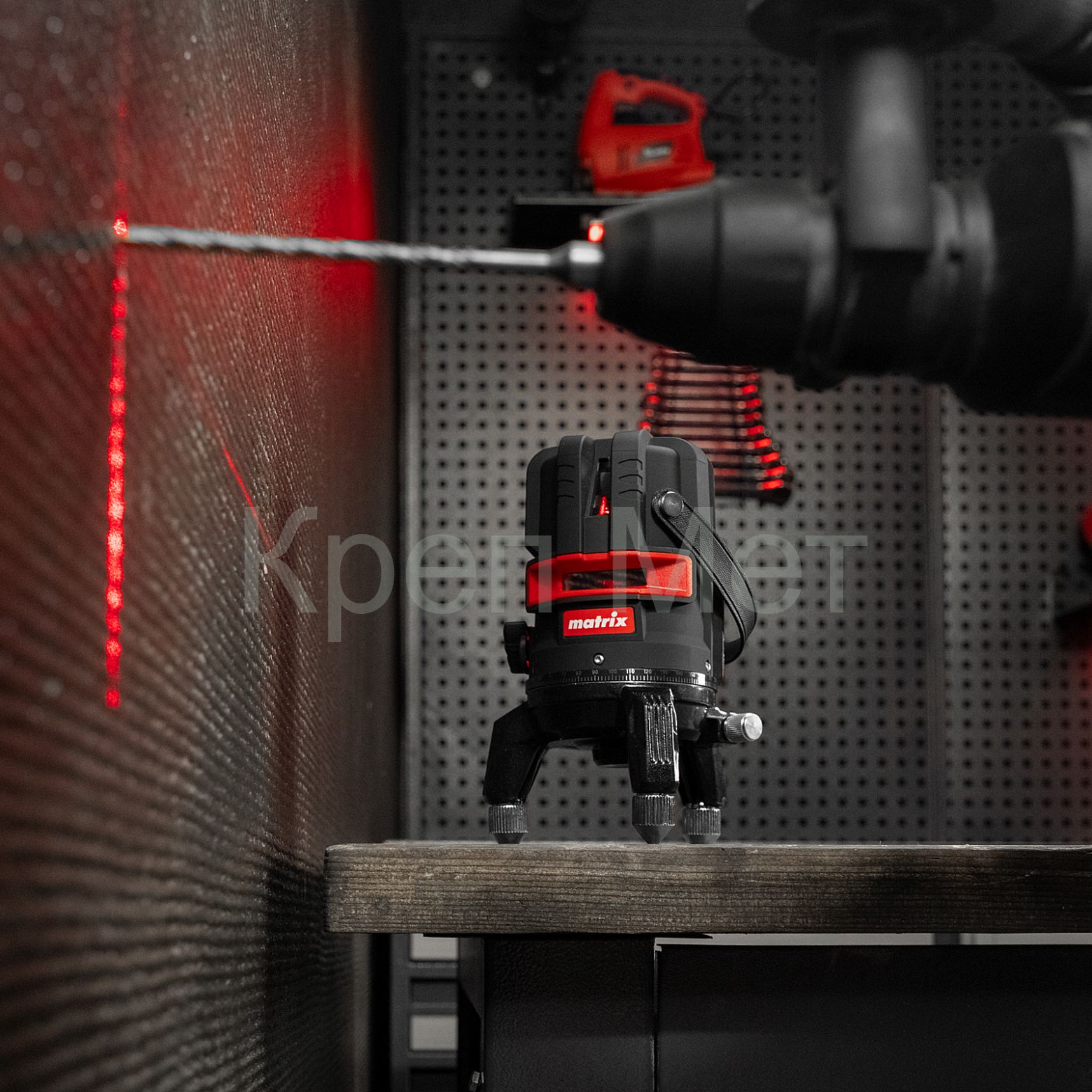 Лазерный уровень Matrix ML 05 Red 35066 с резьбой 5/8" под штатив проецирует горизонтальную и вертикальные линии, а также точку отвеса на расстоянии до 20 м при помощи красных лучей длиной 635 нм. Устройство работает от 3 батареек типа AA. С его помощью можно легко разметить все стены в помещении, чтобы ровно уложить кирпич и плитку, установить окна и двери, смонтировать подвесной потолок.
