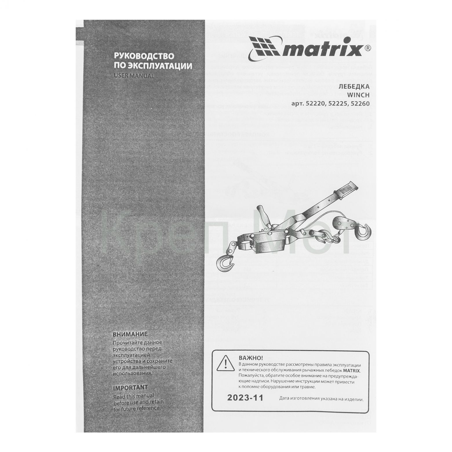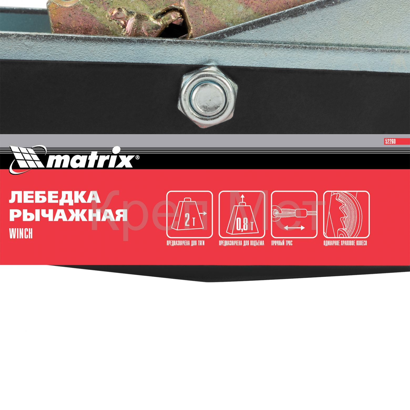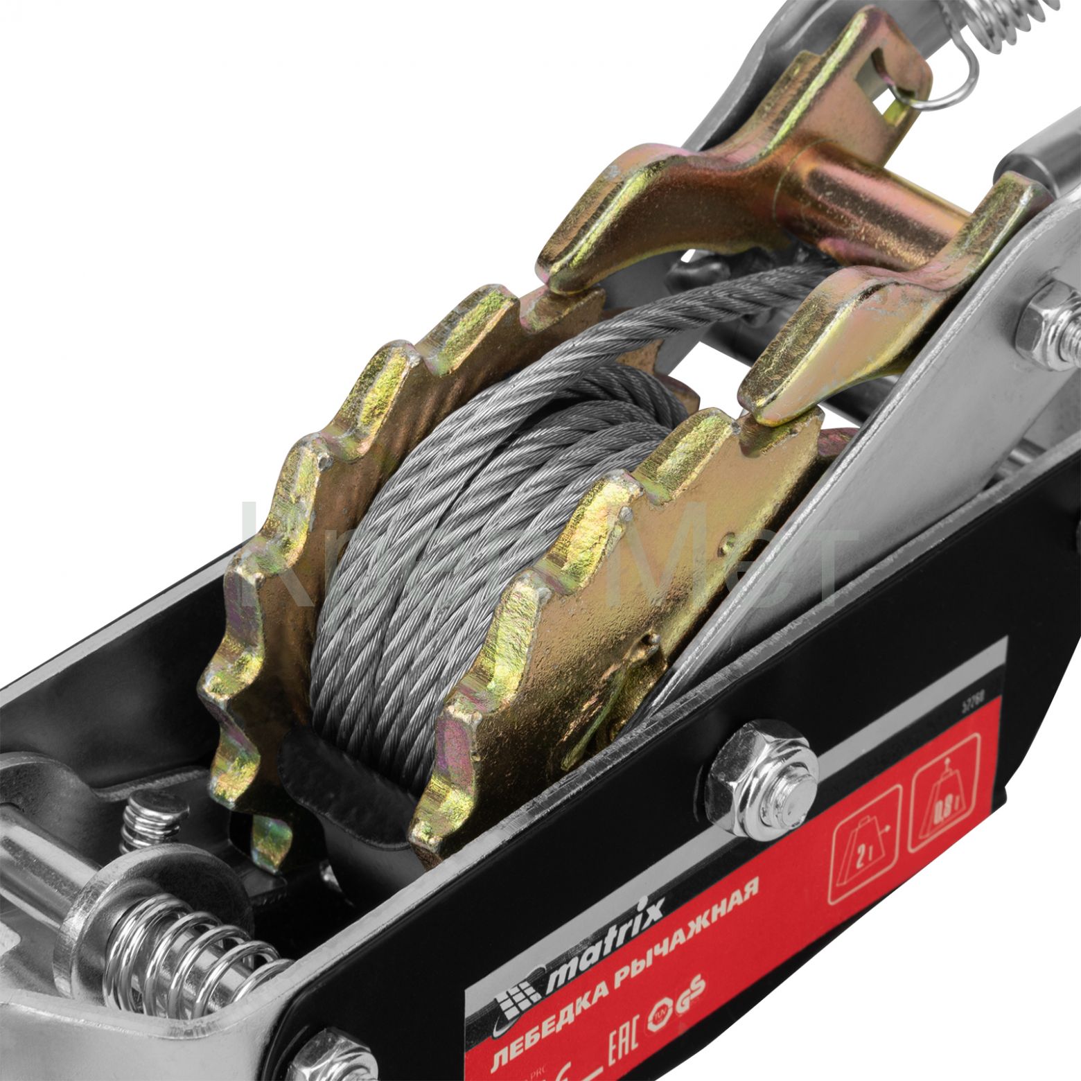 - Лебедка рычажная, тяга 2 т, подъем 0.8 т, двойное храповое колесо Matrix