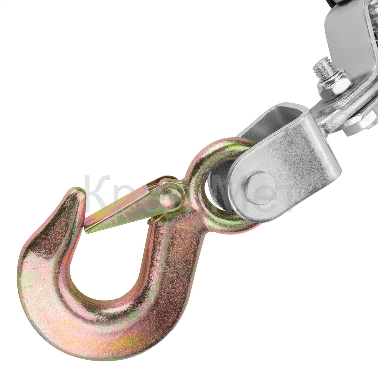 - Безопасная работа — прочный стальной трос диаметром 4,8 мм не рвется под нагрузкой (при соблюдении условий эксплуатации), а стопорный механизм не допускает падения груза.