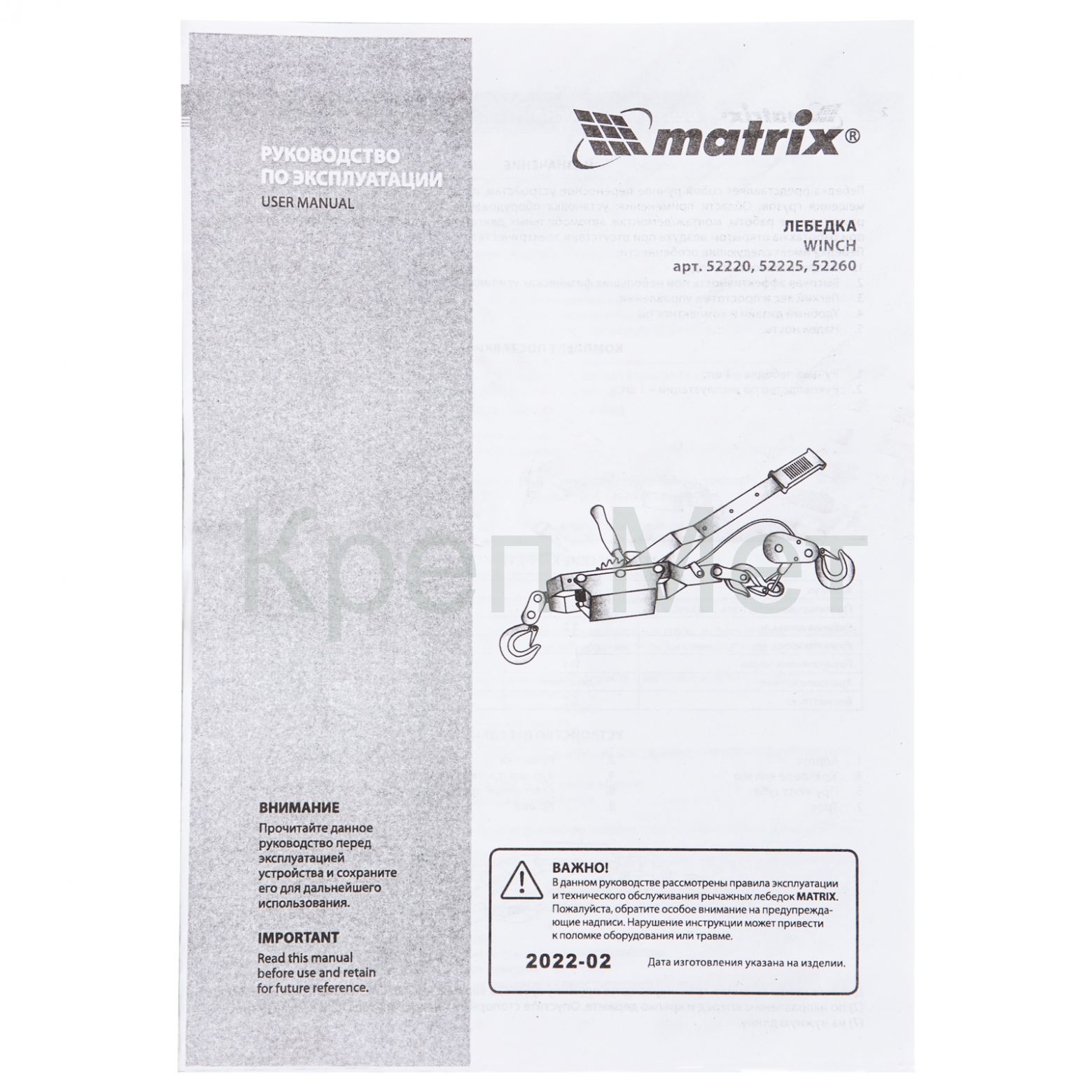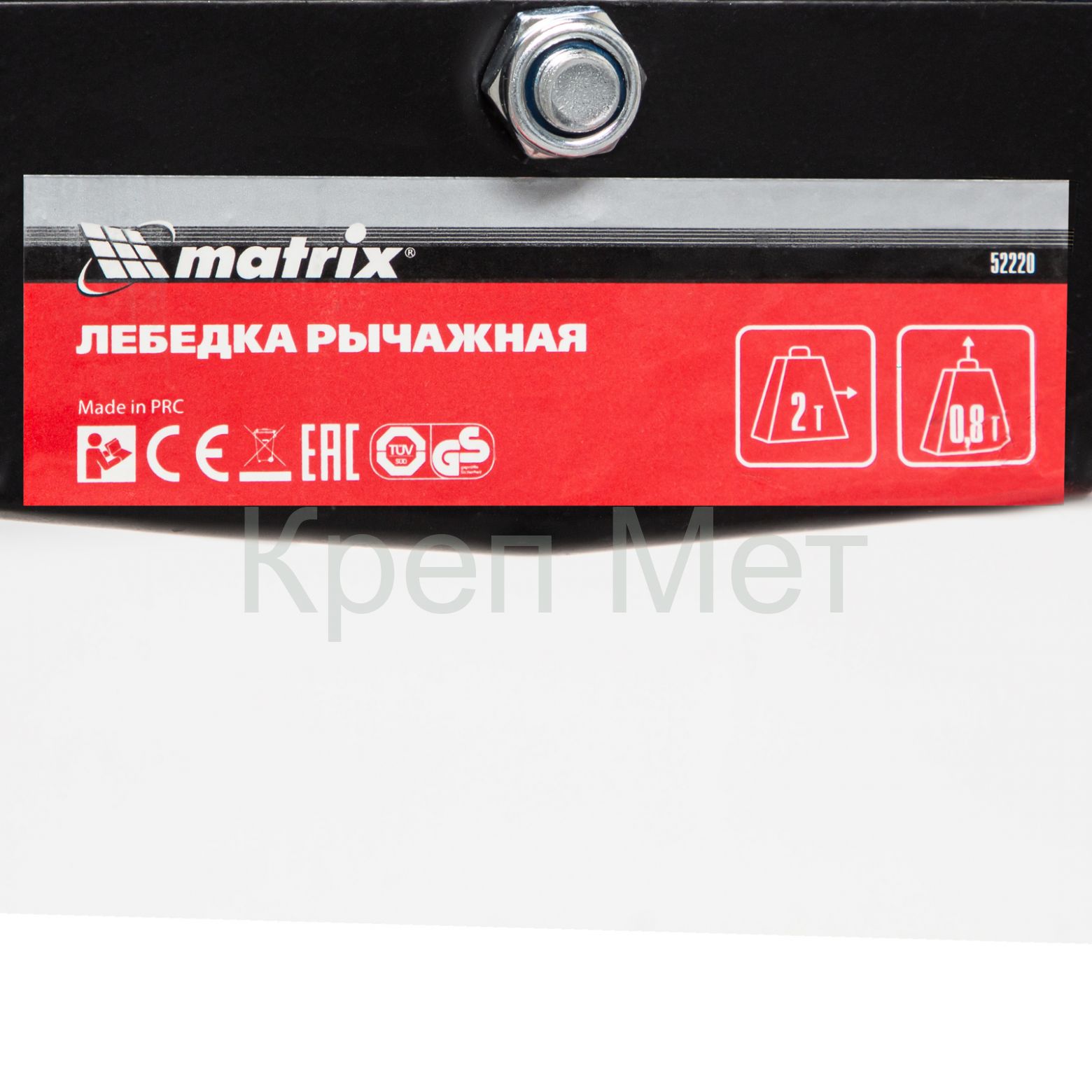 - Лебедка рычажная, тяга 2 т, подъем 0.8 т, одинарное храповое колесо Matrix