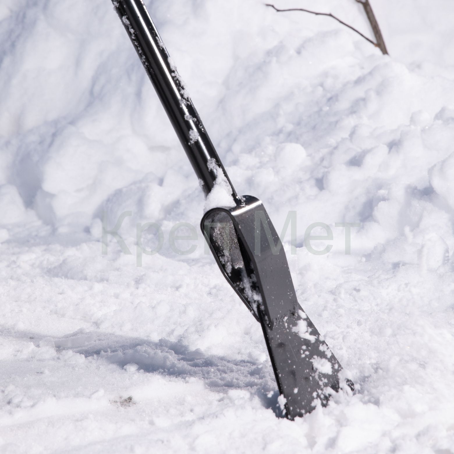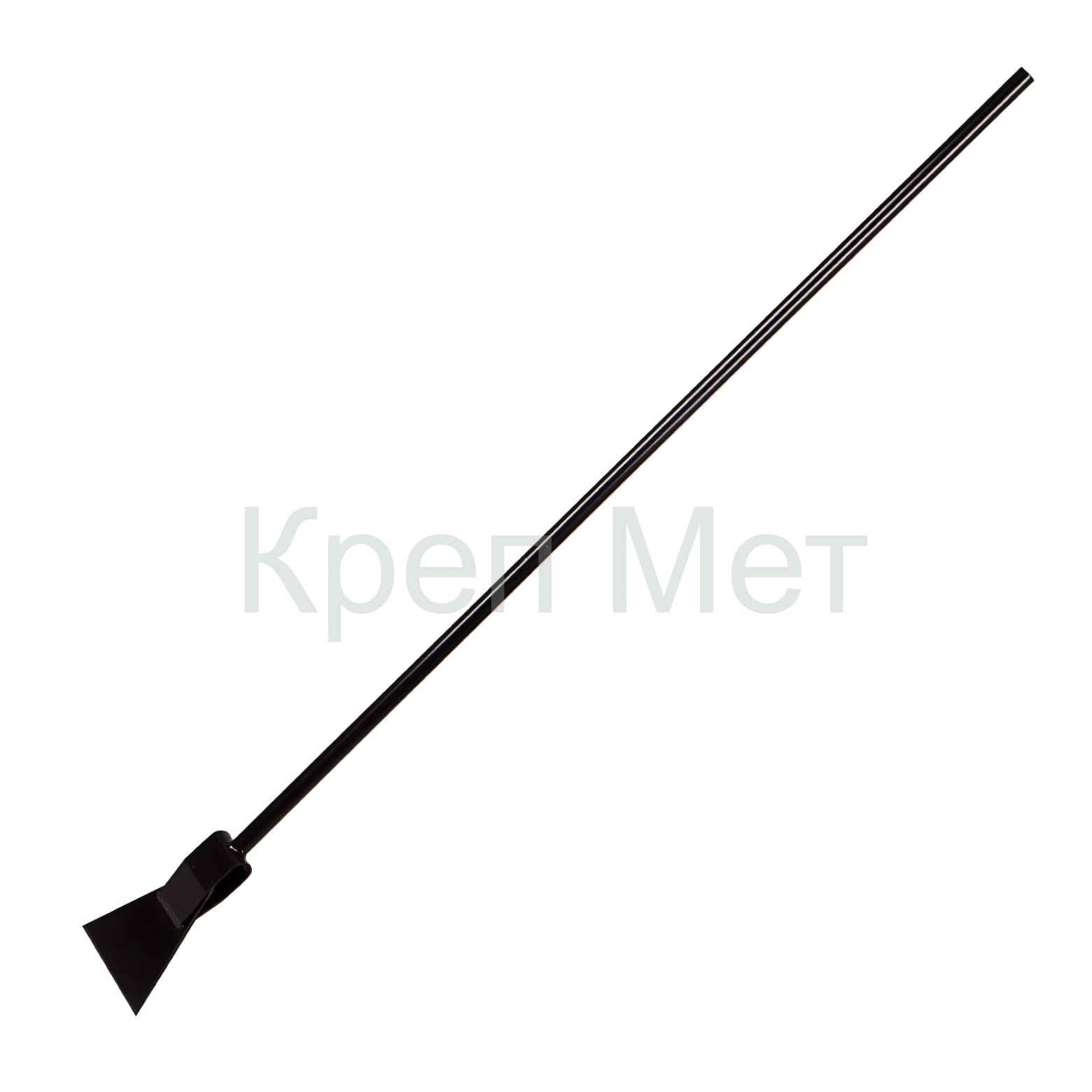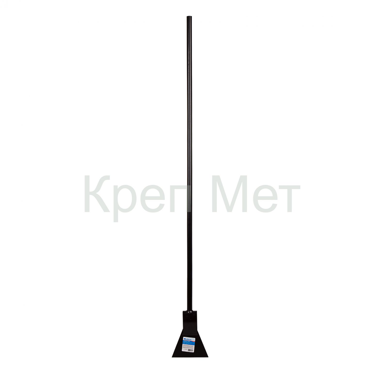 - Черенок выполнен из толстостенной стальной трубы, которая обеспечивает прочность конструкции.