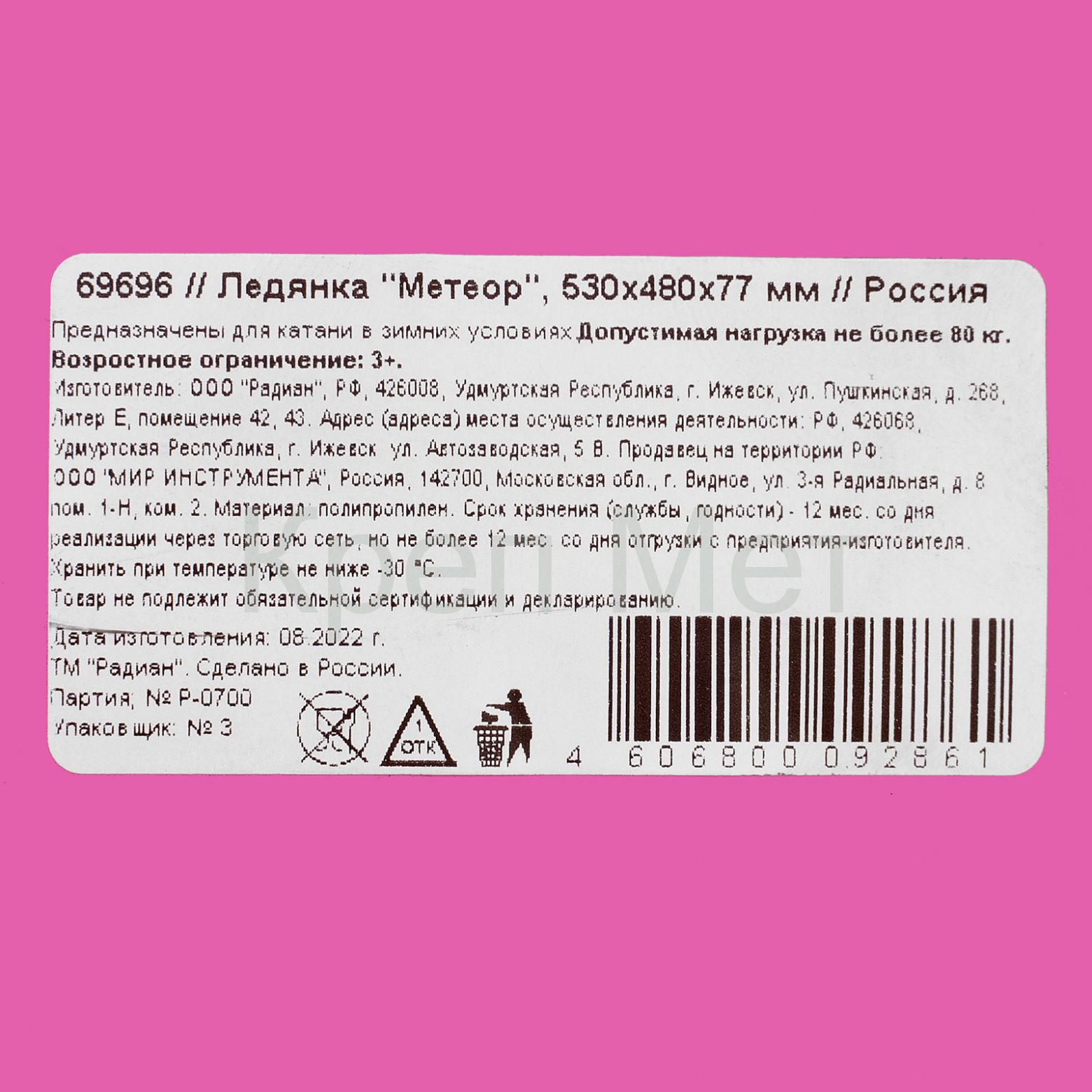 - Ледянка "Метеор", 530х480х77 мм