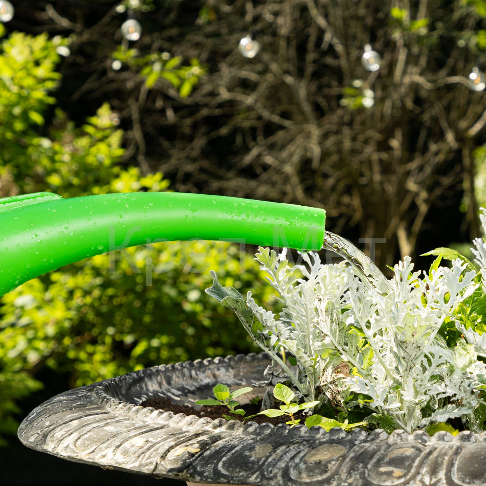 - Равномерный полив — съемная насадка-рассеиватель позволяет орошать посадки без риска размыть землю и оголить корни.