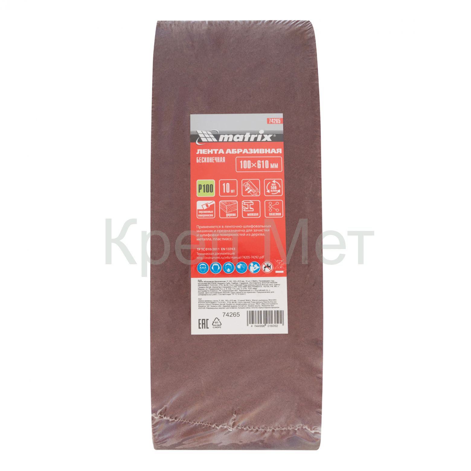- Лента абразивная бесконечная, P 100, 100 х 610 мм, 10 шт Matrix