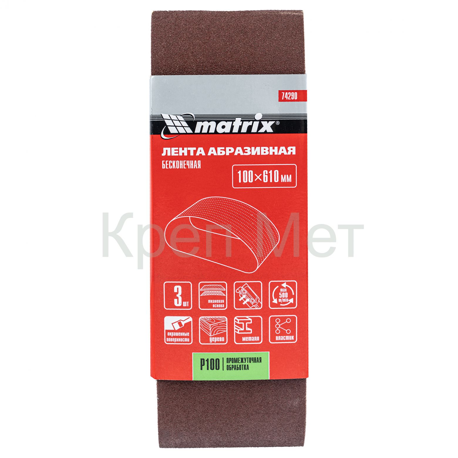 Лента абразивная бесконечная, P 100, 100 х 610 мм, 3 шт Matrix