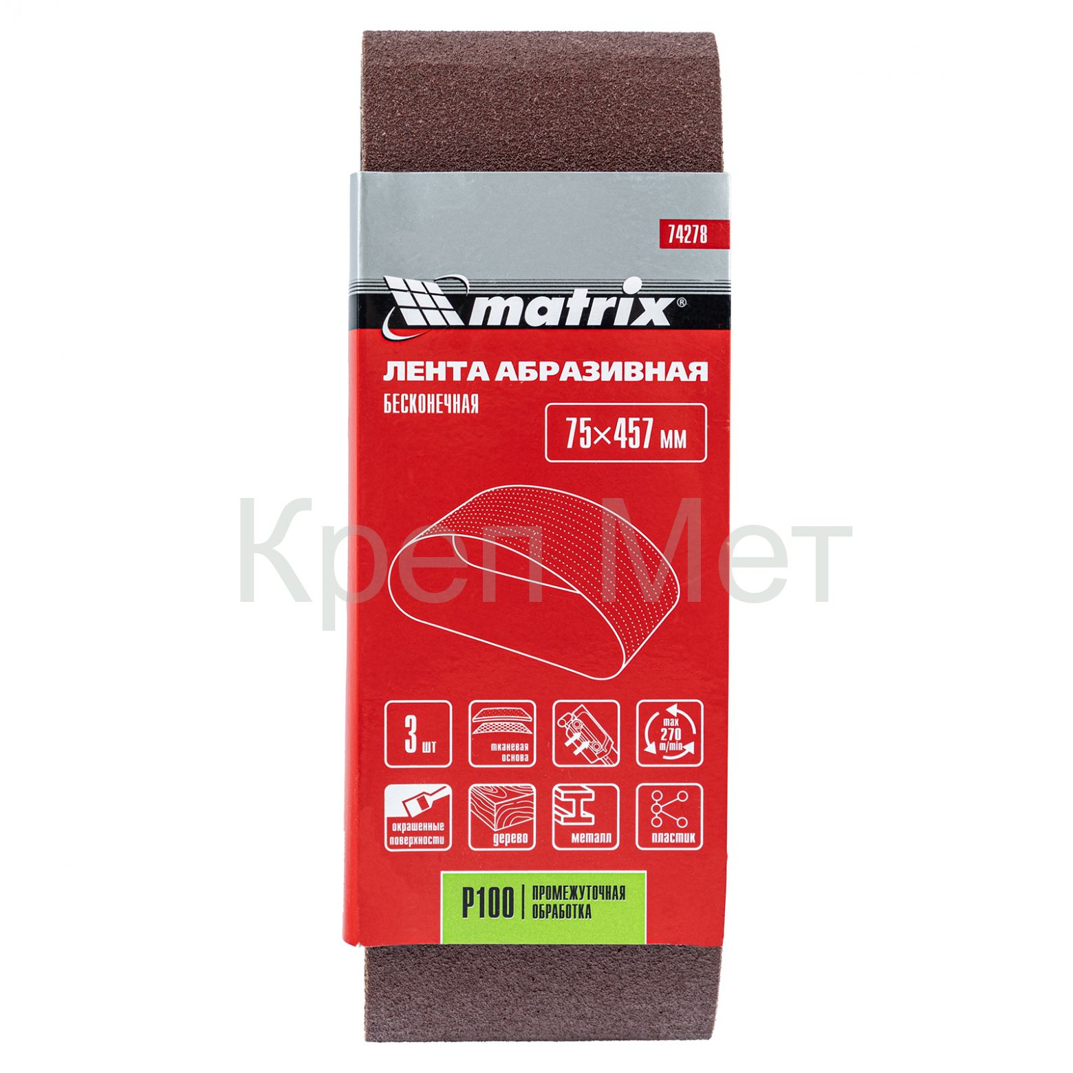- Лента абразивная бесконечная, P 100, 75 х 457 мм, 3 шт Matrix