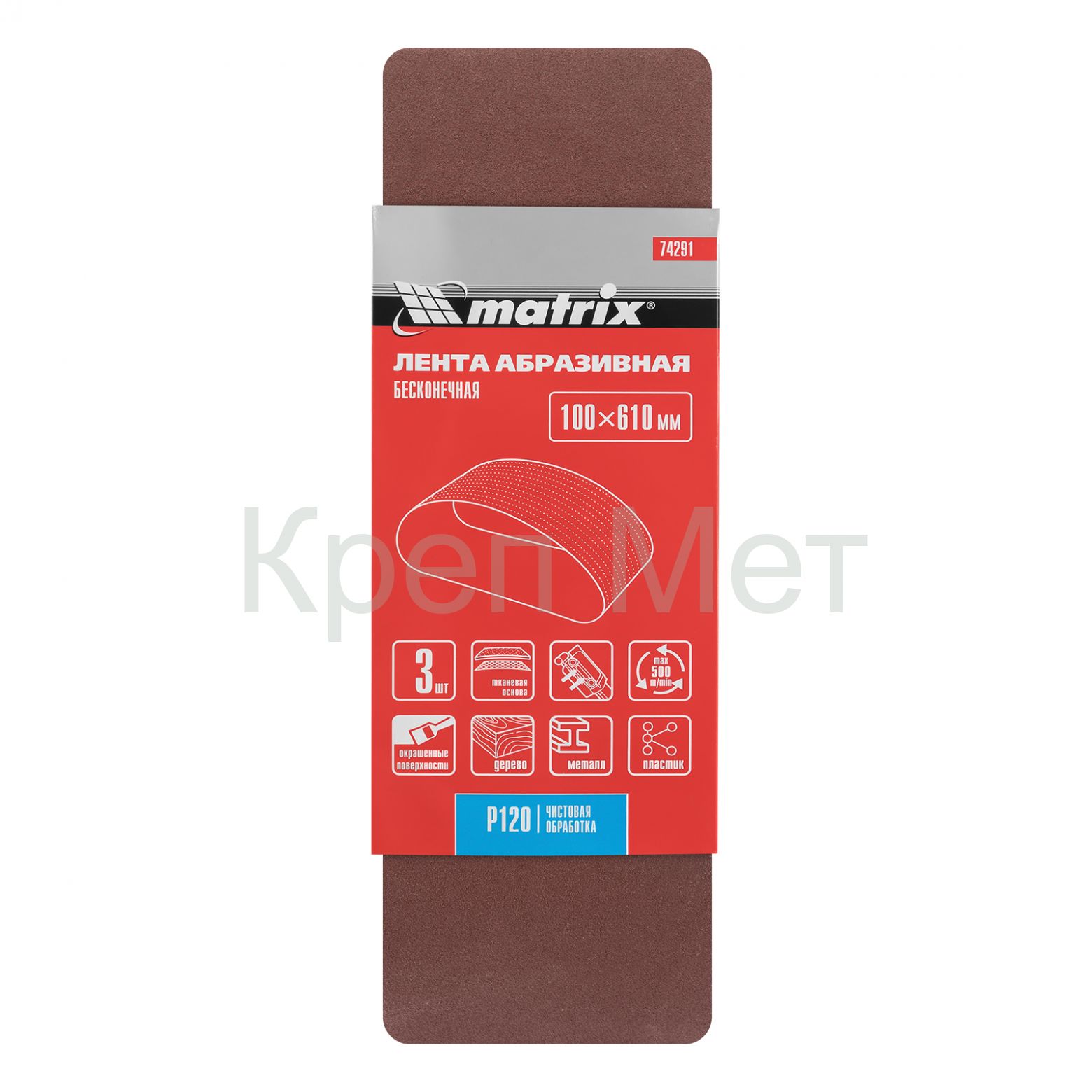 Лента абразивная бесконечная, P 120, 100 х 610 мм, 3 шт Matrix