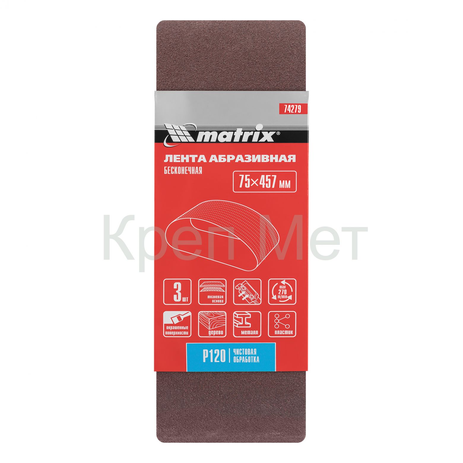 - Лента абразивная бесконечная, P 120, 75 х 457 мм, 3 шт Matrix