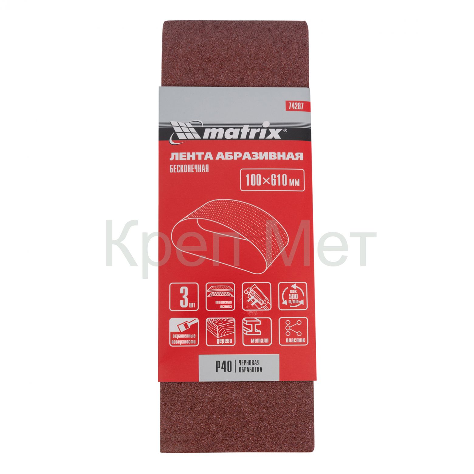 Лента абразивная бесконечная, P 40, 100 х 610 мм, 3 шт Matrix