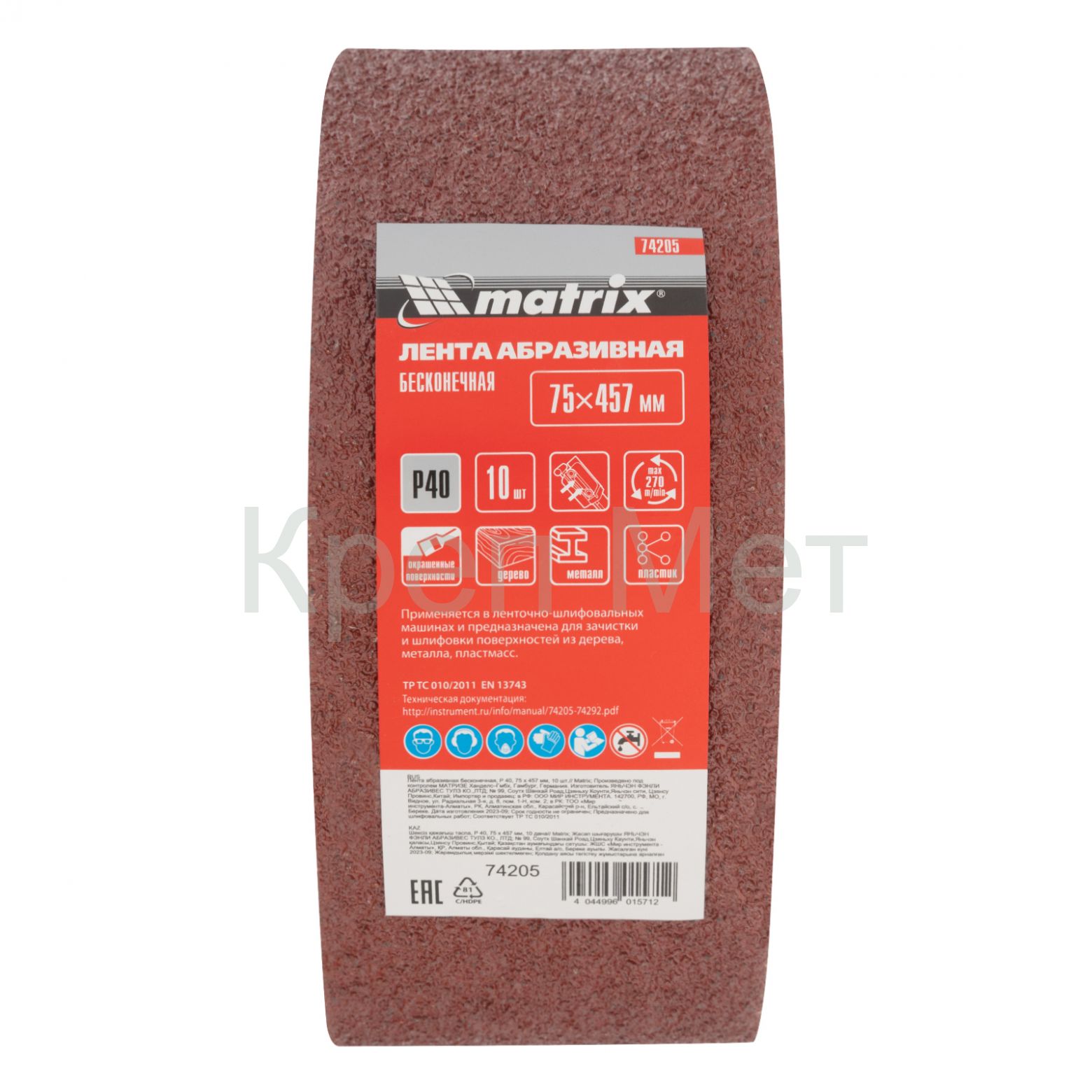 - Лента абразивная бесконечная, P 40, 75 х 457 мм, 10 шт Matrix