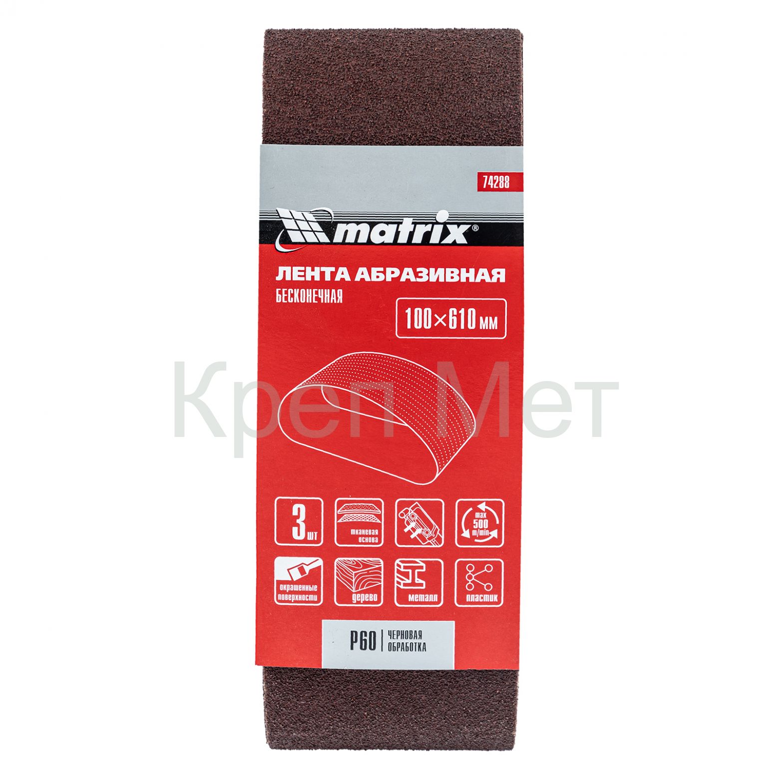 Лента абразивная бесконечная, P 60, 100 х 610 мм, 3 шт Matrix
