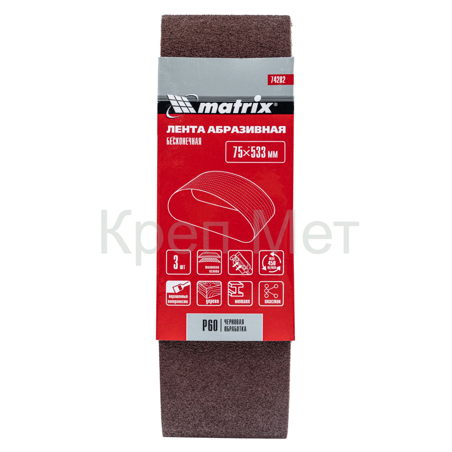 Лента абразивная бесконечная, P 60, 75 х 533 мм, 3 шт Matrix