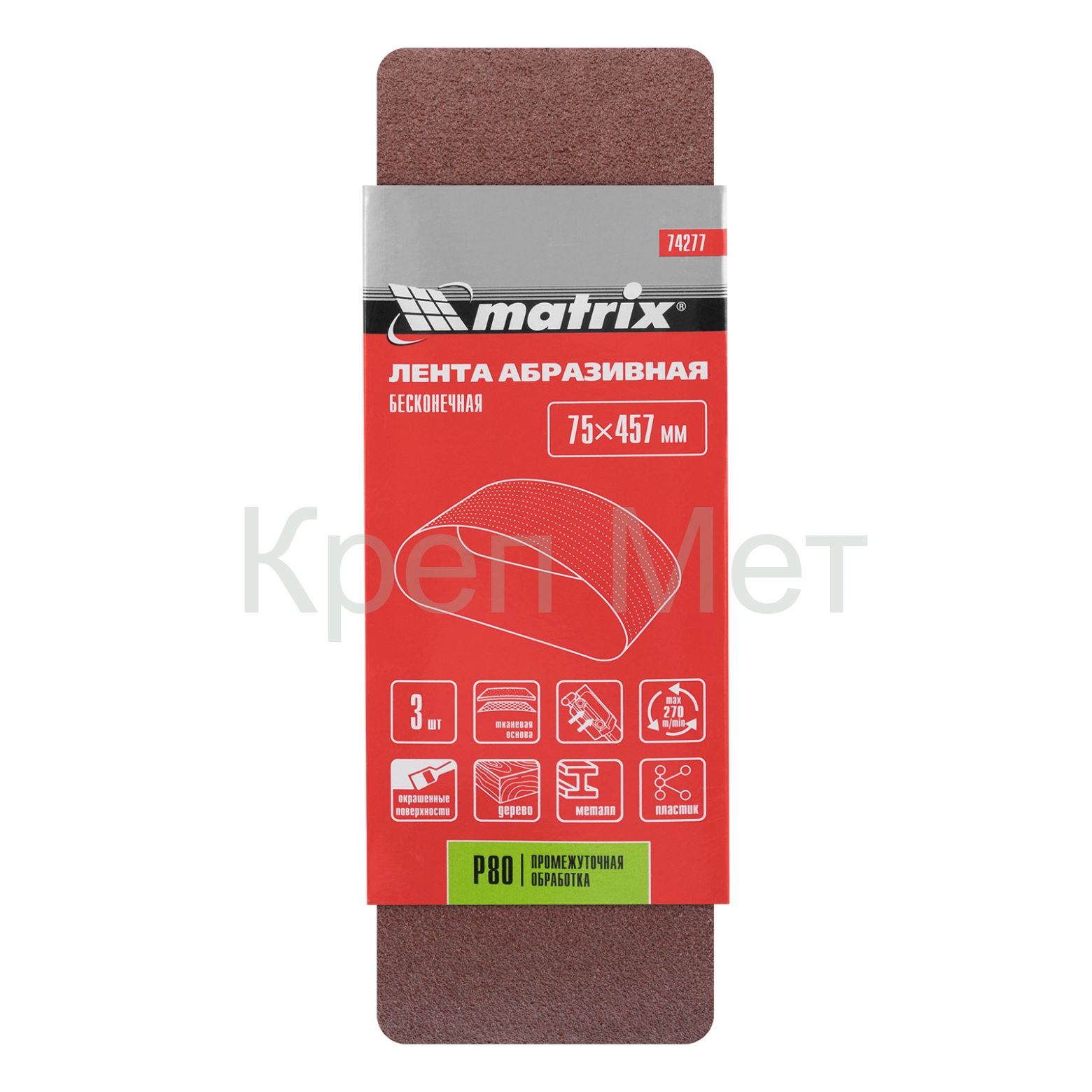 - Лента абразивная бесконечная, P 80, 75 х 457 мм, 3 шт Matrix