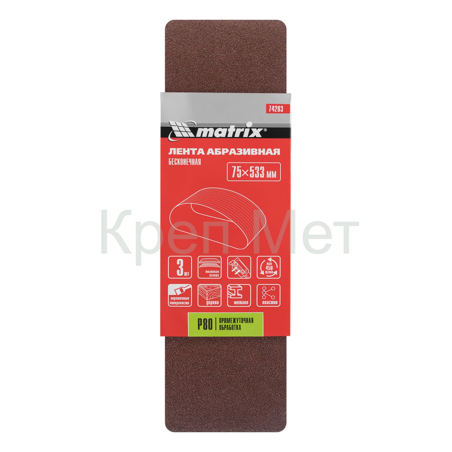 - Лента абразивная бесконечная, P 80, 75 х 533 мм, 3 шт Matrix