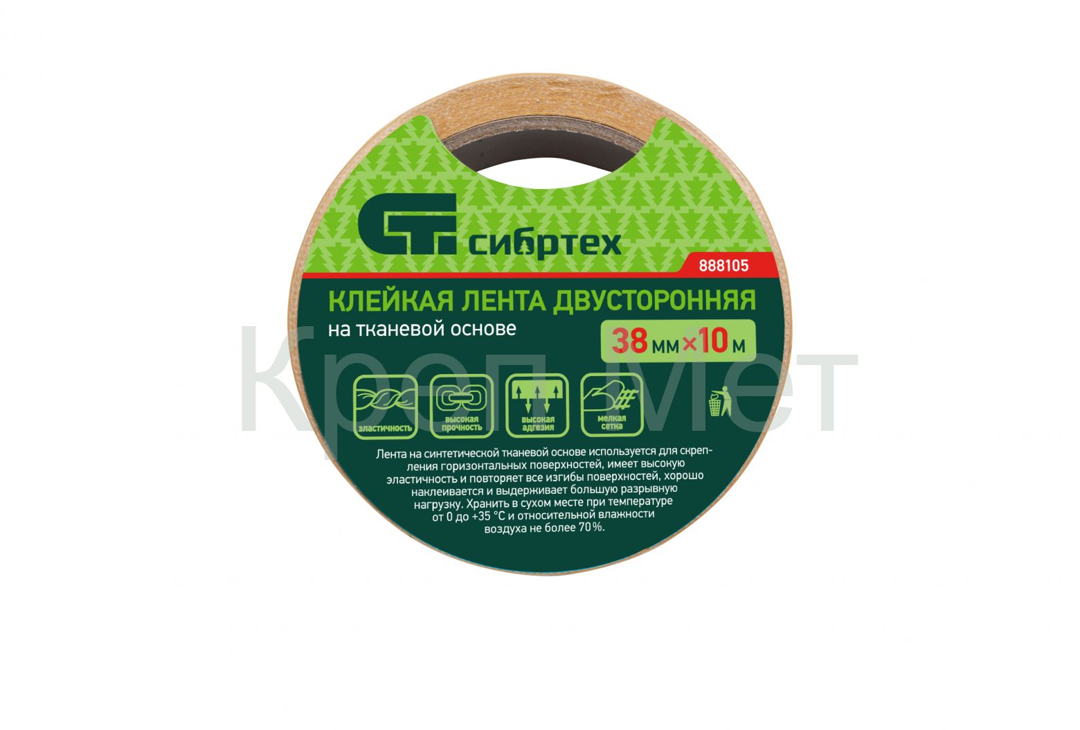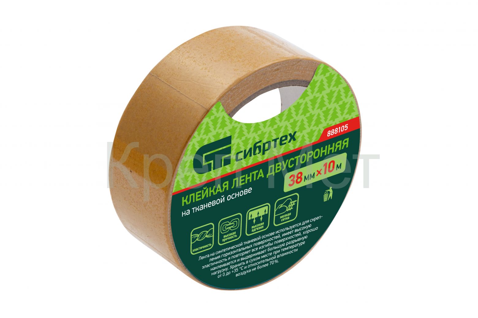 - Лента клейкая двусторонняя, 38 мм х 10 м, на тканевой основе Сибртех