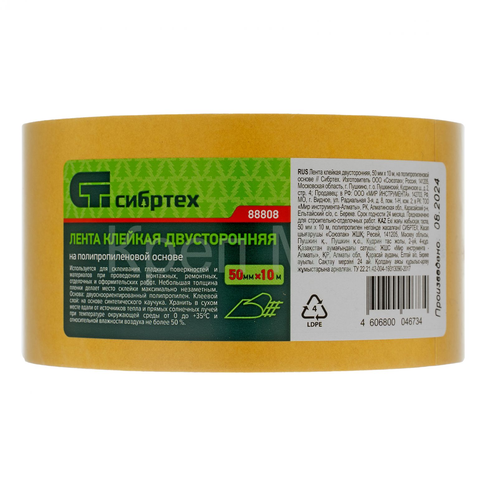 - Лента клейкая двусторонняя, 50 мм х 10 м, на полипропиленовой основе Сибртех