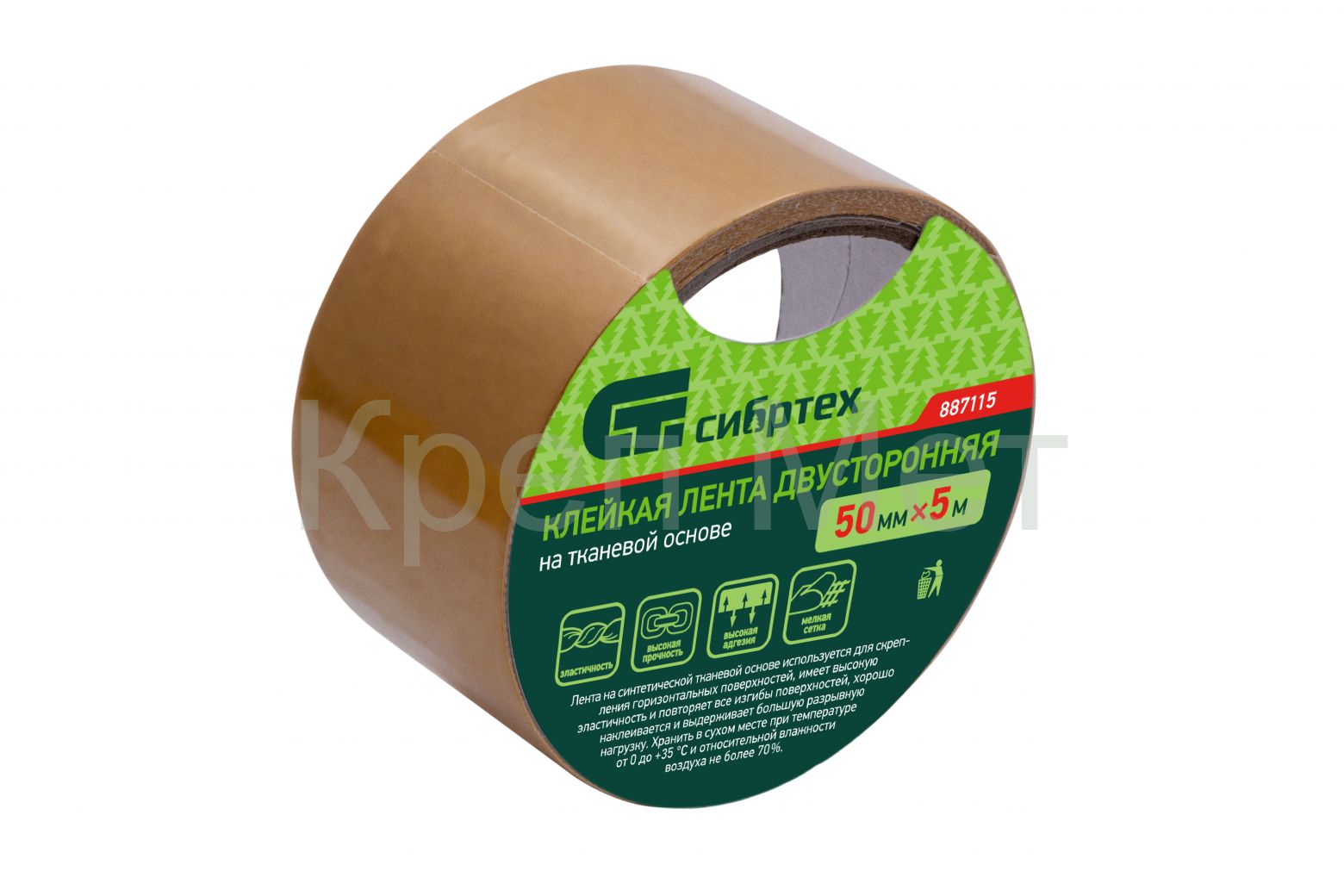 - Лента клейкая двусторонняя, 50 мм х 5 м, на тканевой основе Сибртех