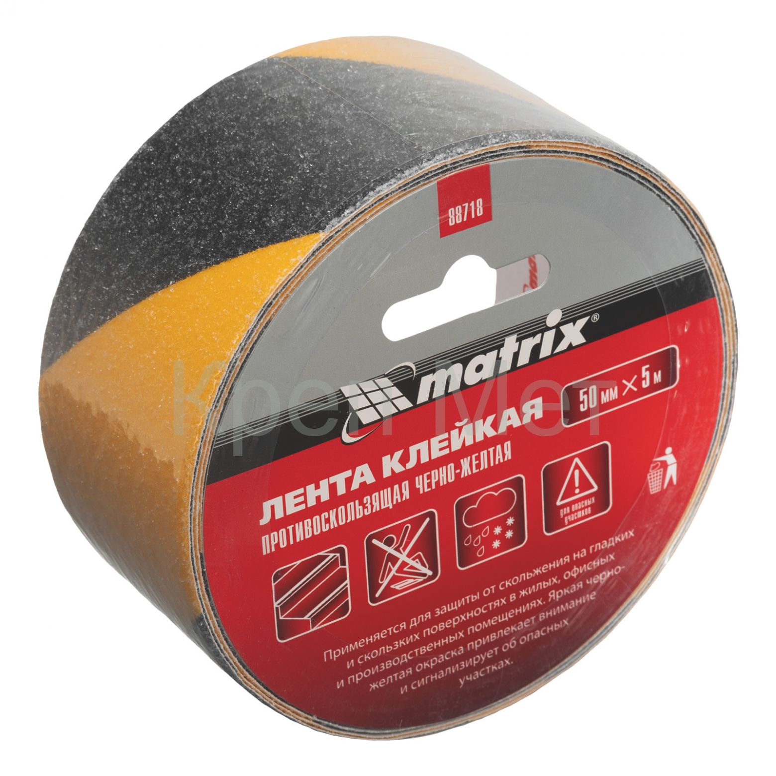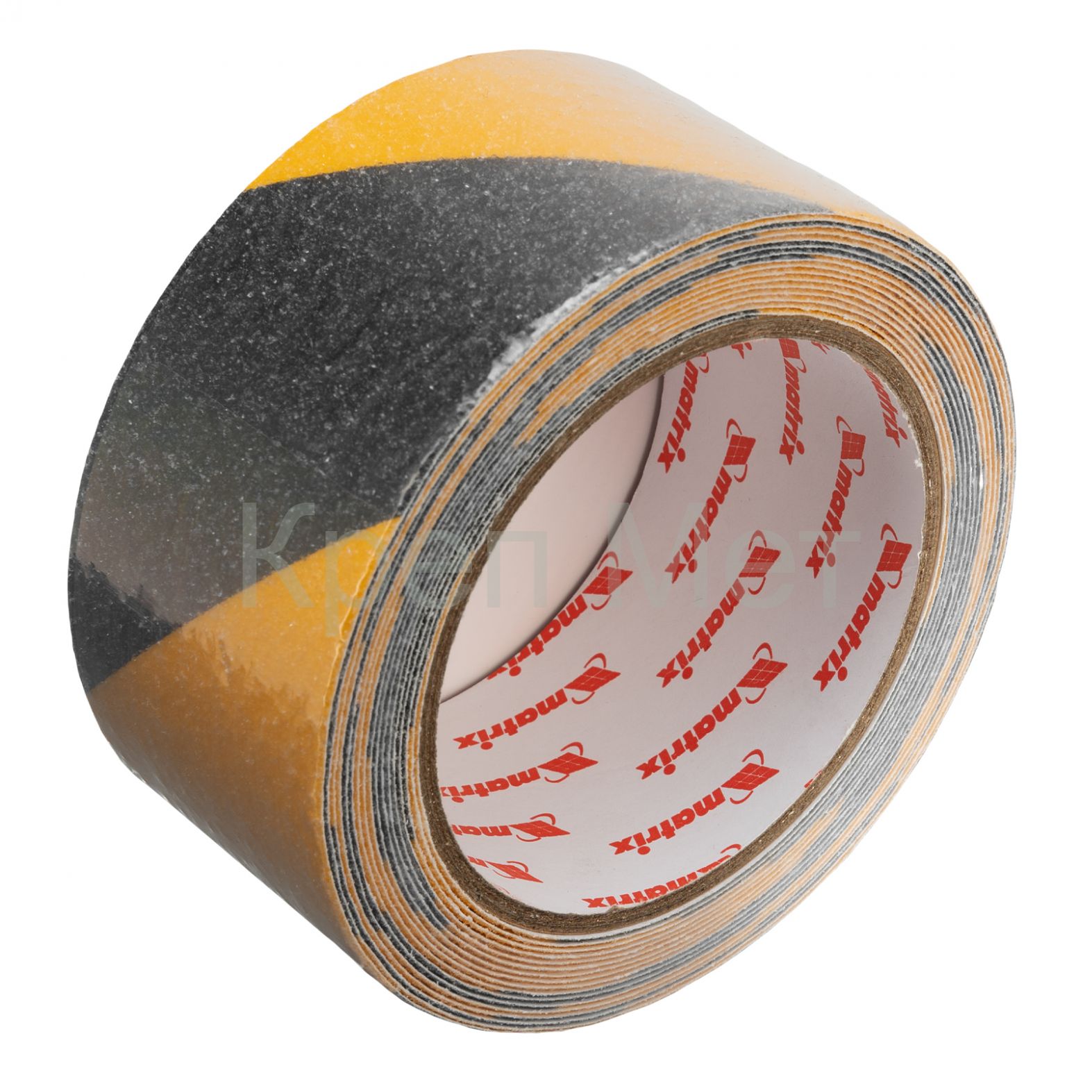 - Лента клейкая противоскользящая, черно-желтая 50 мм x 5 м Matrix