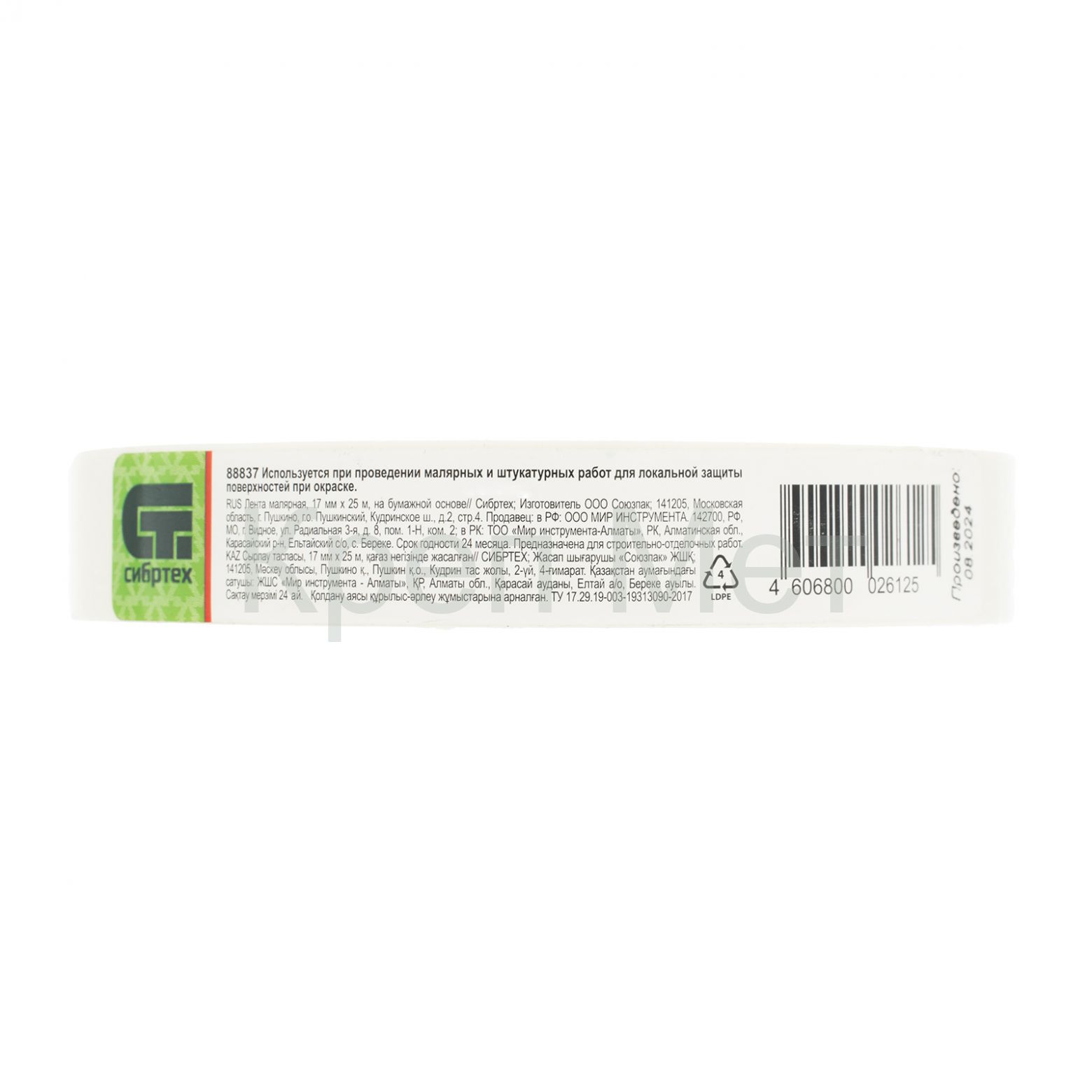 - Лента малярная, 17 мм х 25 м, на бумажной основе Сибртех
