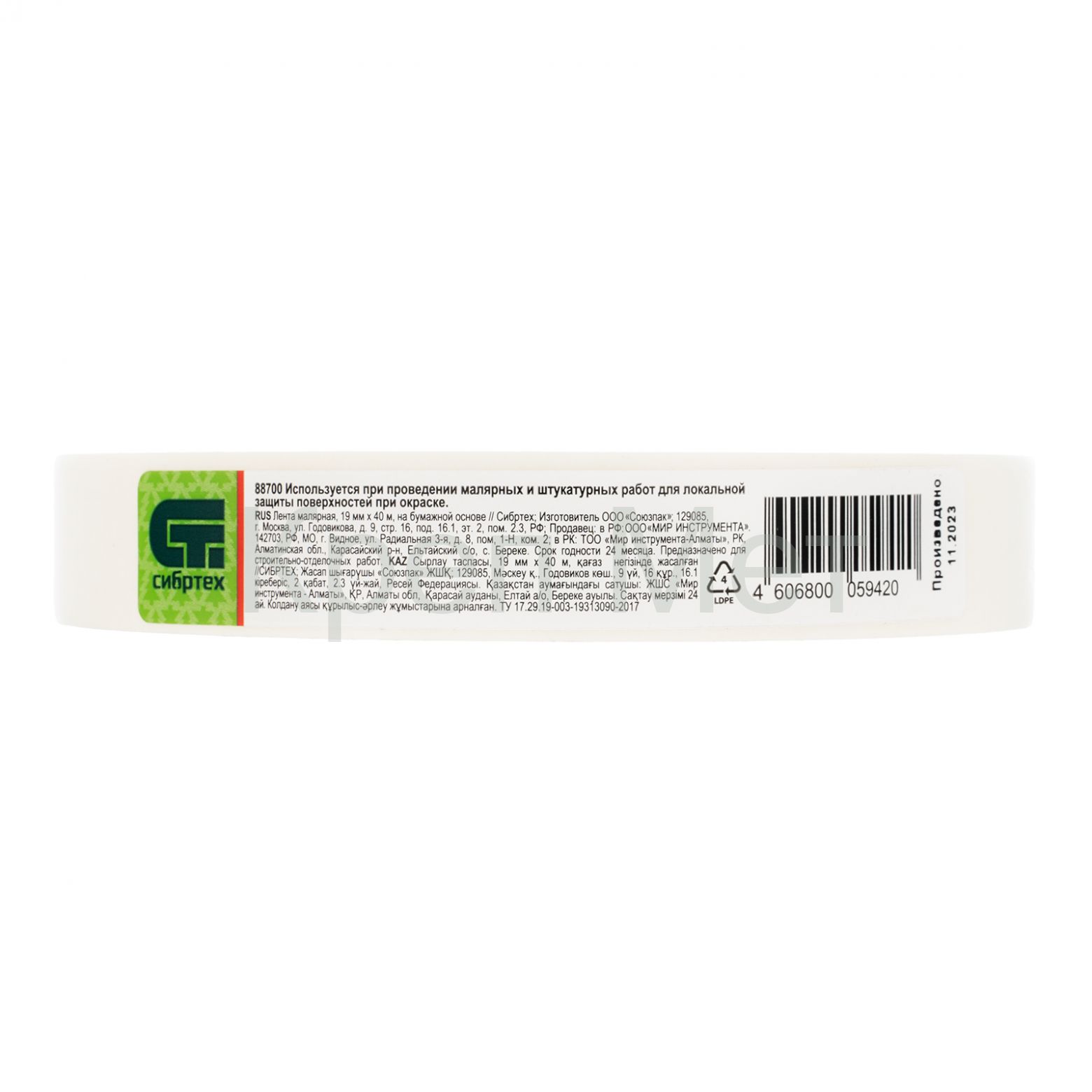 - Лента малярная, 19 мм х 40 м, на бумажной основе Сибртех