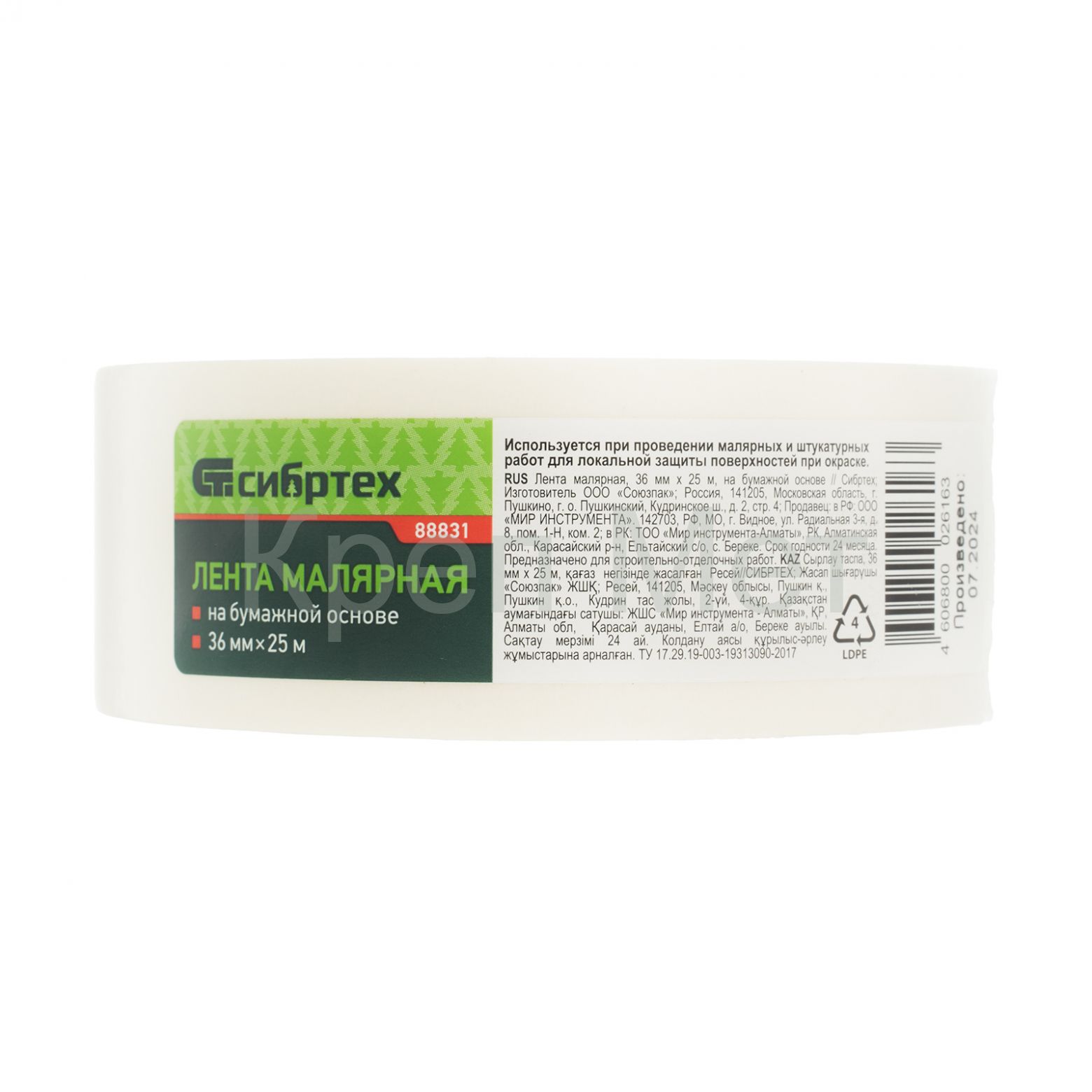 - Лента малярная, 36 мм х 25 м, на бумажной основе Сибртех