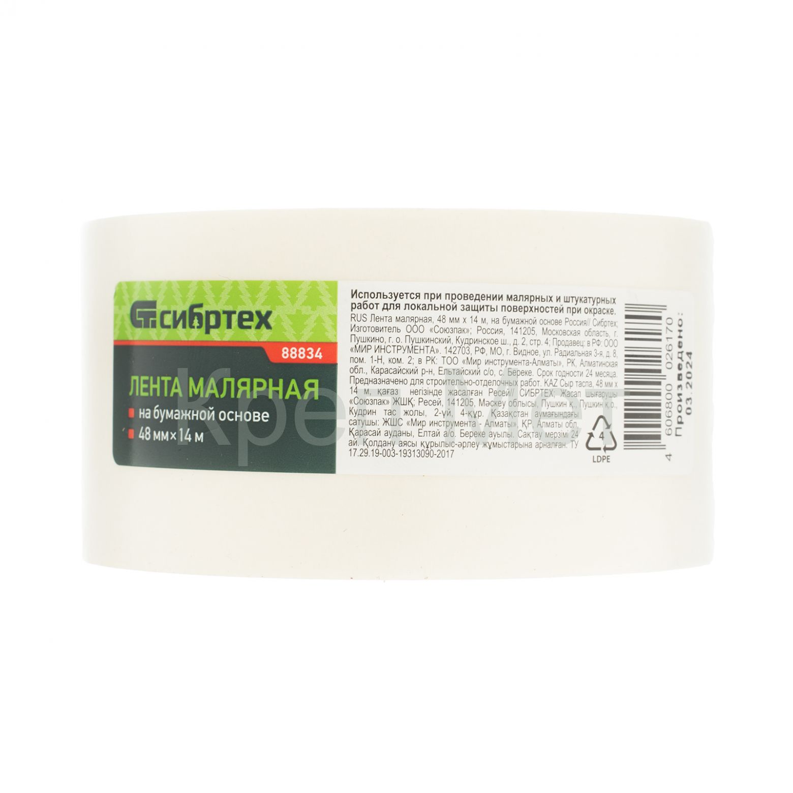 - Лента малярная, 48 мм х 14 м, на бумажной основе Сибртех