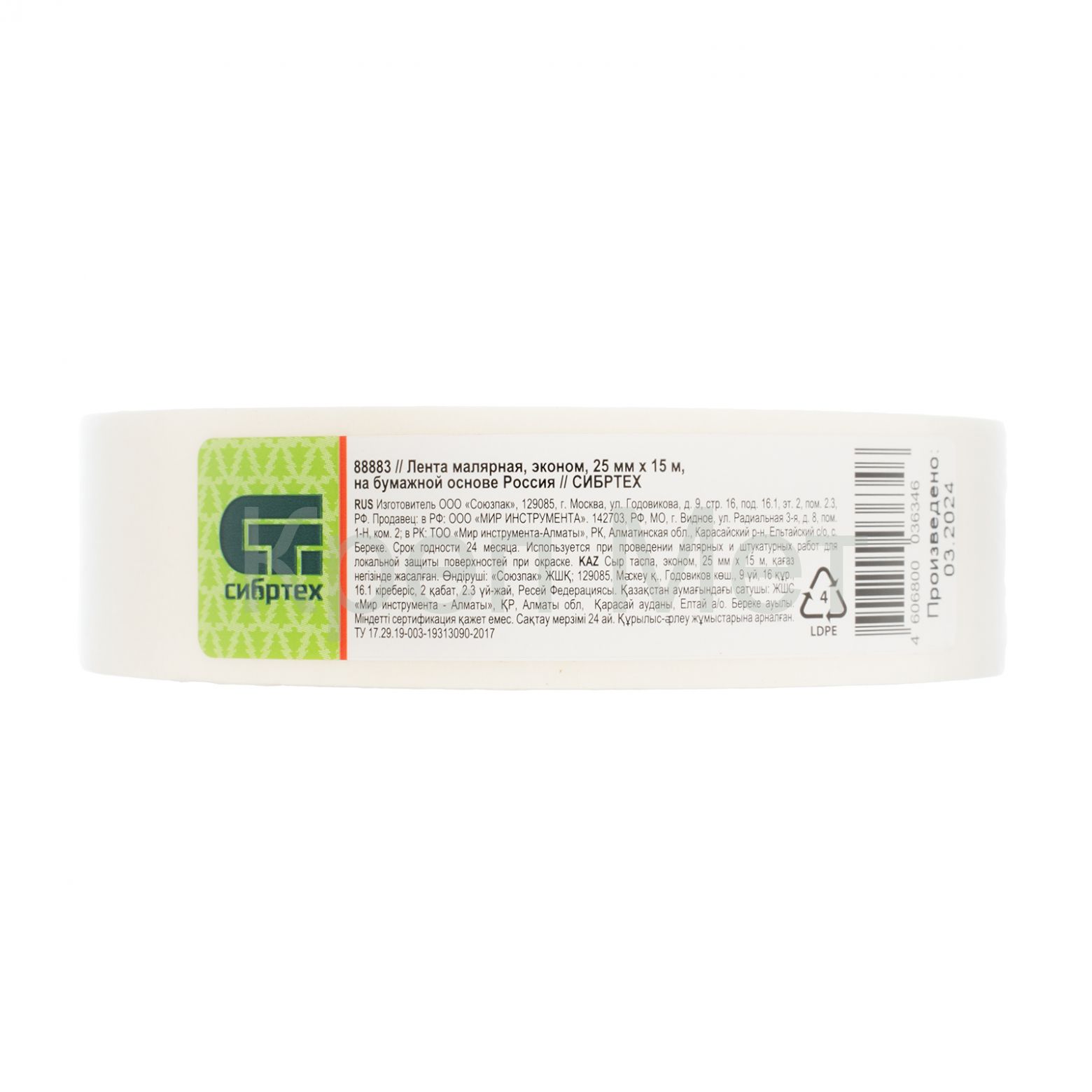 - Лента малярная, эконом, 25 мм x 15 м, на бумажной основе Сибртех