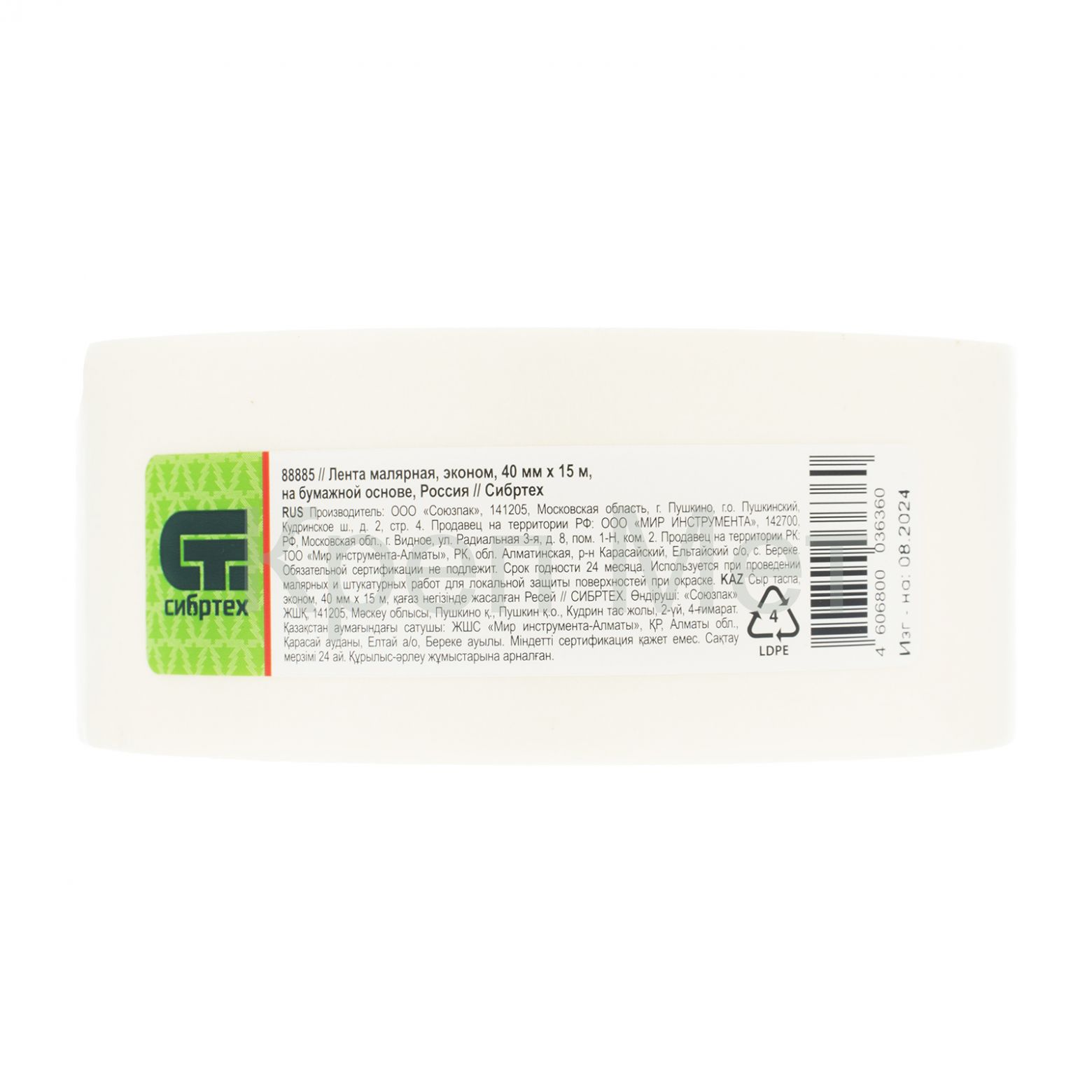 - Лента малярная, эконом, 40 мм x 15 м, на бумажной основе Сибртех