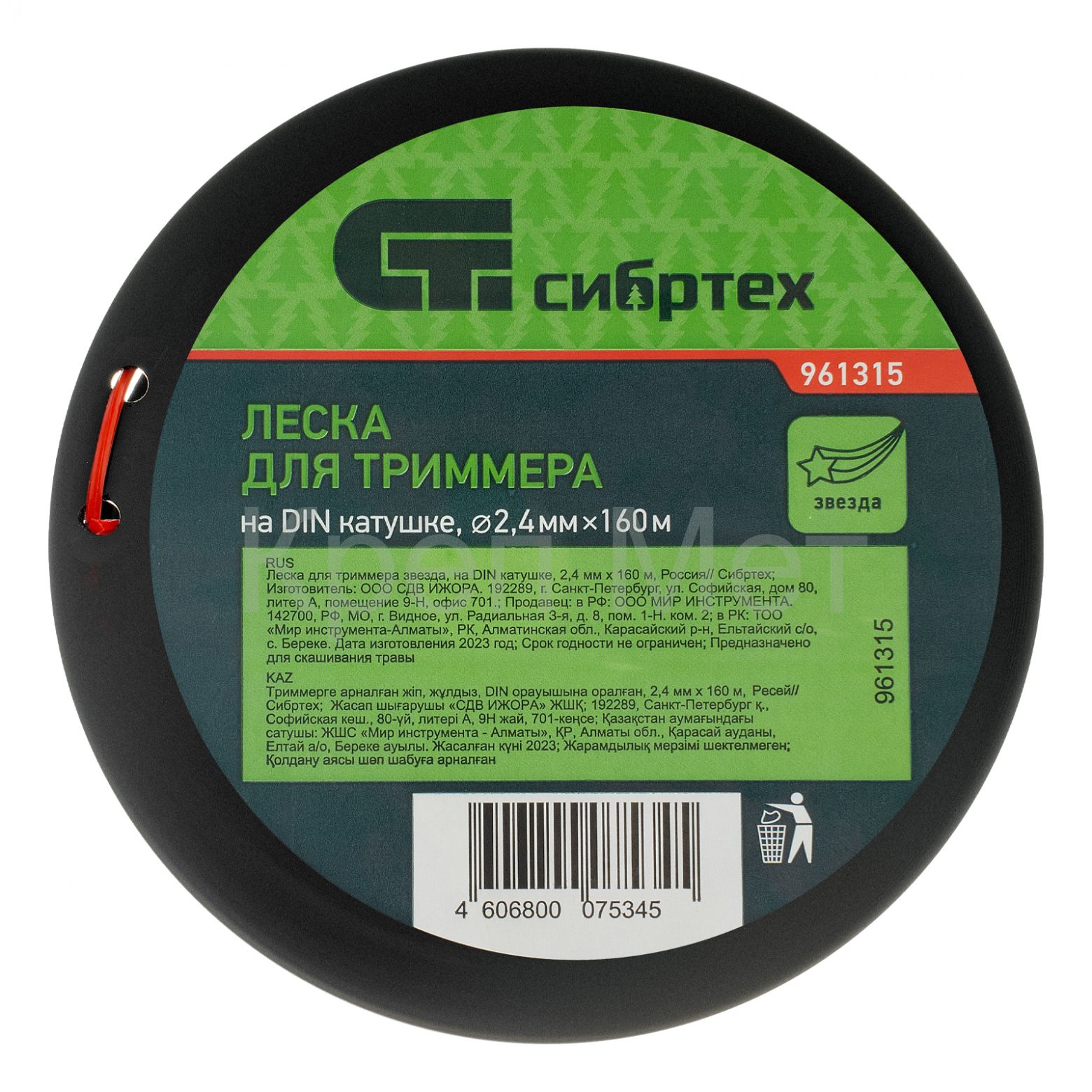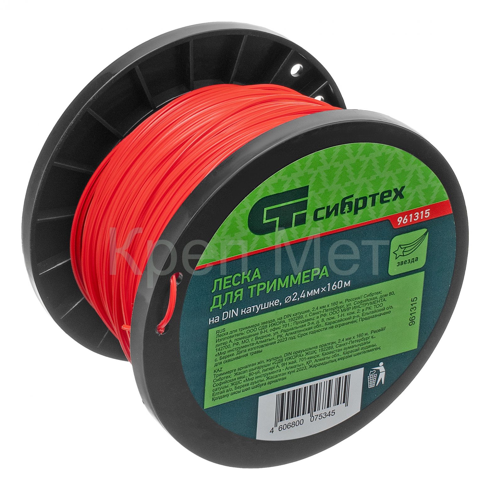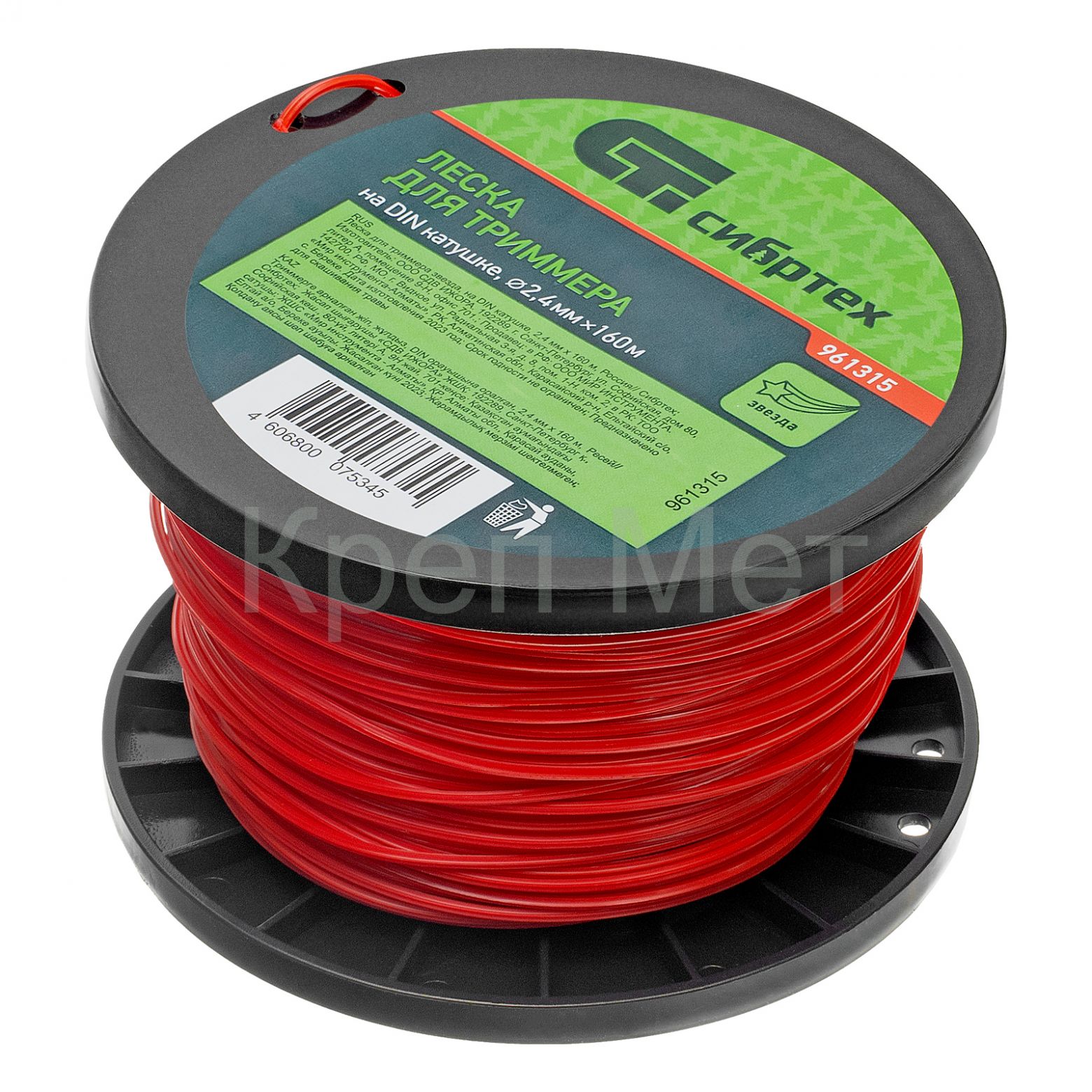 - Леска для триммера звезда, на DIN катушке, 2.4 мм х 160 м, Сибртех