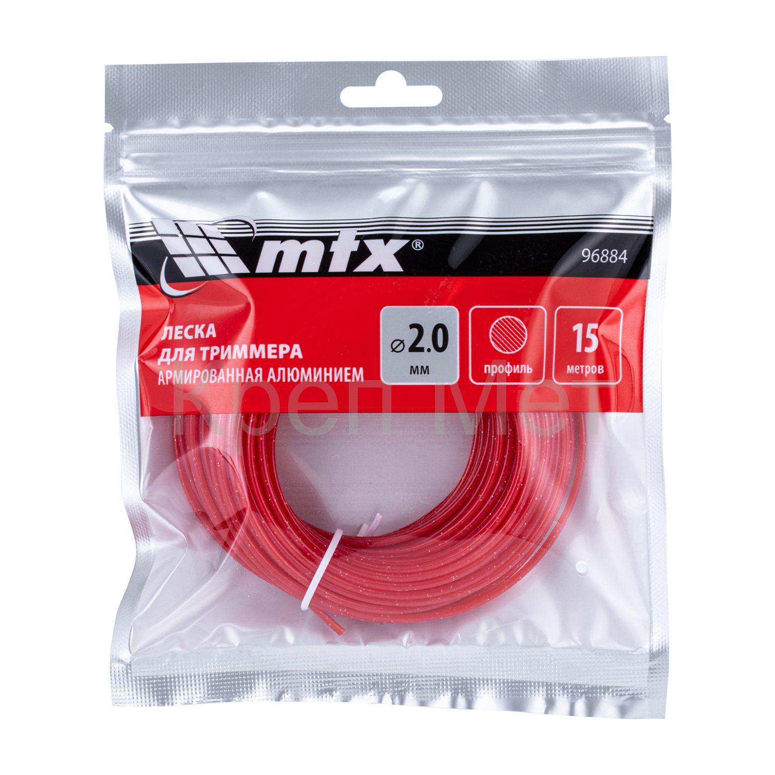 Леска для триммера MTX 96884 круглого сечения, диаметром 2,0 мм и длиной 15 м, армированная алюминием, эффективно срезает как молодую, газонную, так и высокую, жесткую траву. Совместно с электрическим триммером мощностью 1000-1500 Вт позволяет привести в порядок территорию загородного участка.