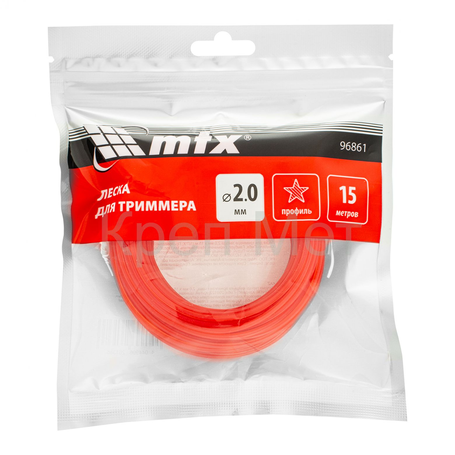 Леска для триммера MTX 96861 с сечением «звезда», толщиной 2,0 мм и длиной 15 м, подходит для скашивания как мягкой газонной, так и жесткой травы. Используется в качестве расходного материала для электрических триммеров мощностью 1000-1500 Вт. Необходима для ухода за дачным участком.