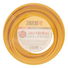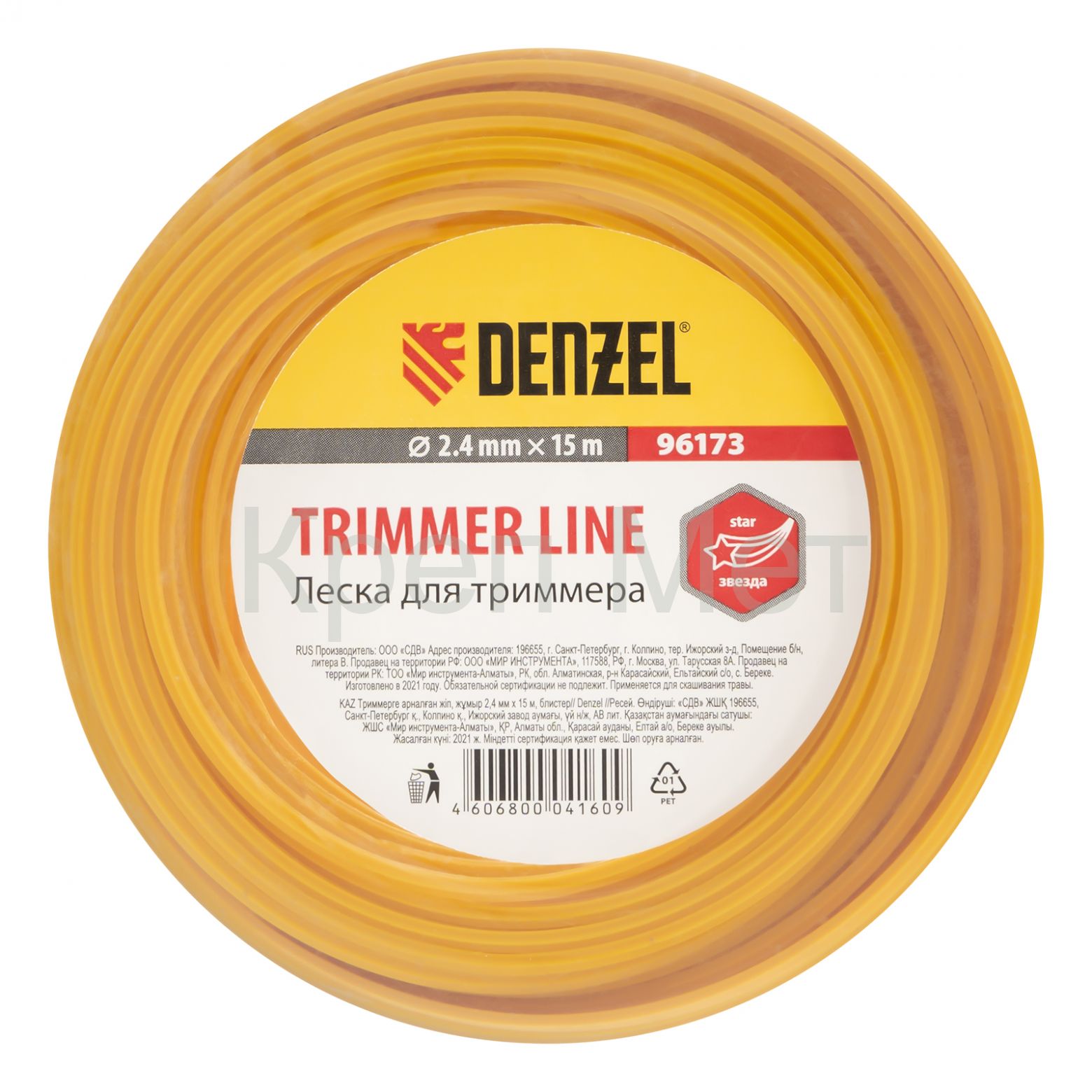 Леска Denzel 96173 размером 2,4 мм х 15 м может заправляться в катушку электрического или бензинового триммера. Форма сечения «звезда» обеспечивает высокое качество скашивания травы, бурьяна и высохшей растительности. Работать такой леской можно на ровных участках без камней.