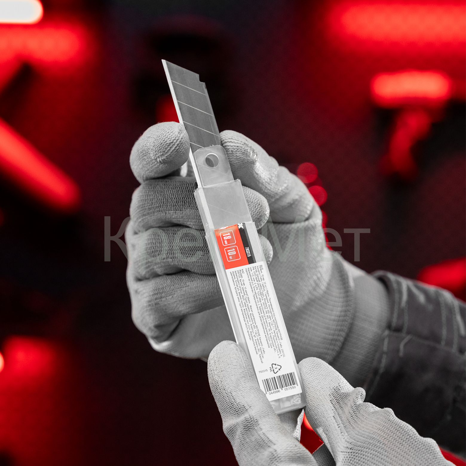 Лезвия Matrix 793315 шириной 18 мм и длиной 109 мм, 10 шт. в упаковке, — запасные части к монтажным ножам соответствующего типоразмера. Ими можно резать твердые материалы, линолеум, пластик, гипсокартон, а также бумагу, пленку, картон. Лезвия используются при проведении строительных и отделочных работ, а также применяются в хозяйственных целях.